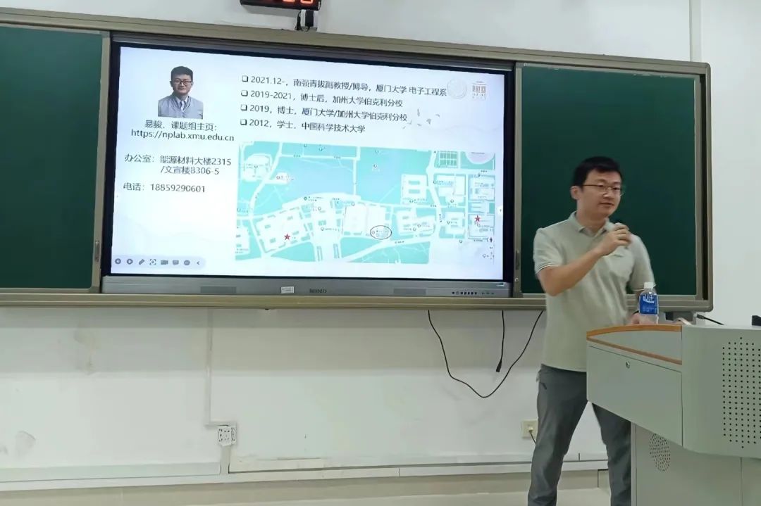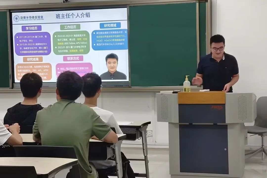 2023级本科生五班班主任庄明伟在学武楼B306召开新生班会。他进行自我介绍并围绕自己的专业领域以及电子信息专业现状进行展望交流。他希望同学们把握好本科这一宝贵的学习时机,用好厦大优越的环境,勤于思考,积极参加竞赛等活动;学习之外,坚持运动,做到劳逸结合。