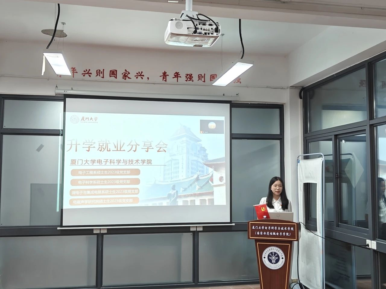本次升学就业分享主题党日活动由电子工程系硕士生2023级党支部、电子科学系硕士生2023级党支部、微电子与集成电路系硕士生2023级党支部、电磁声学研究院硕士生2023级党支部联合举办。活动促进了学院不同年级、不同专业方向学生的交流,充分发挥了朋辈互助优势和支部服务同学作用,为学院研究生的职业生涯规划和求职准备提供了有效指导。