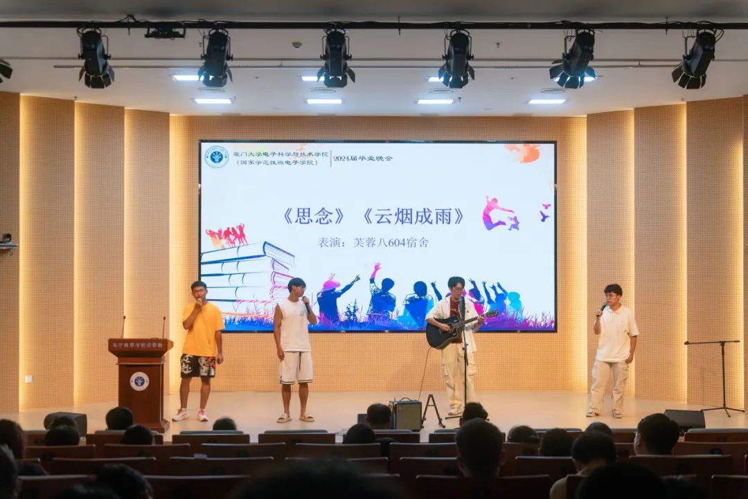 李澄、胡凡、刘锦锗、邵亢邑、左霆华五位老师特别准备的《最初的梦想》,迎来了本场晚会第一个小高潮,他们以此与毕业生们共勉,希望2024届毕业生们不忘最初的梦想,乘风万里,一往无前。