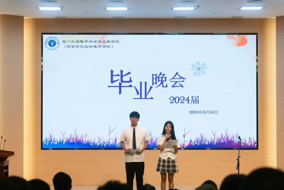 6月14日晚,电子科学与技术学院2024届毕业晚会在南存钿楼C405报告厅举行。电子学院副院长李澄、团委书记胡凡、团委副书记刘锦锗、邵亢邑、校区保卫办左霆华及学院2024届本硕博毕业生参加晚会。晚会由2024届硕士毕业生陈照艺、2024届本科毕业生李书琦主持。