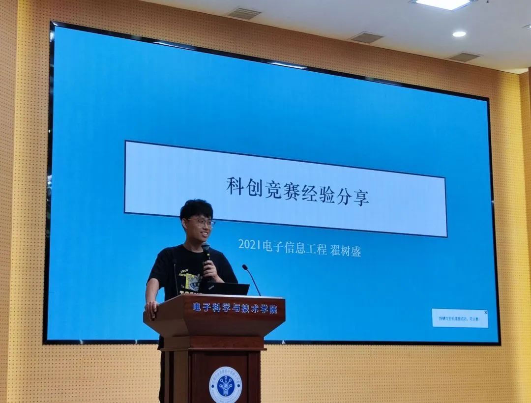 翟树盛分享了自己大学期间的竞赛经历。他带领新生们全方面、多角度地了解各类竞赛的具体规定及注意事项,告诉大家如何通过赛前准备、时间安排和赛后分析拿下各类奖项。