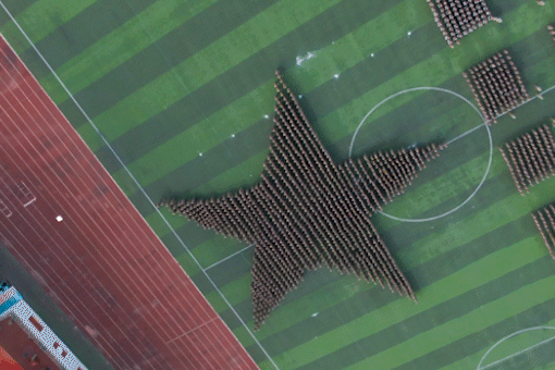 为了这场完美的演出,方阵日夜不停地训练、喊口号,每一次训练都展现他们的团结一致、心有灵犀,每一声口号都表达了他们对祖国、对学校最真挚的热爱。