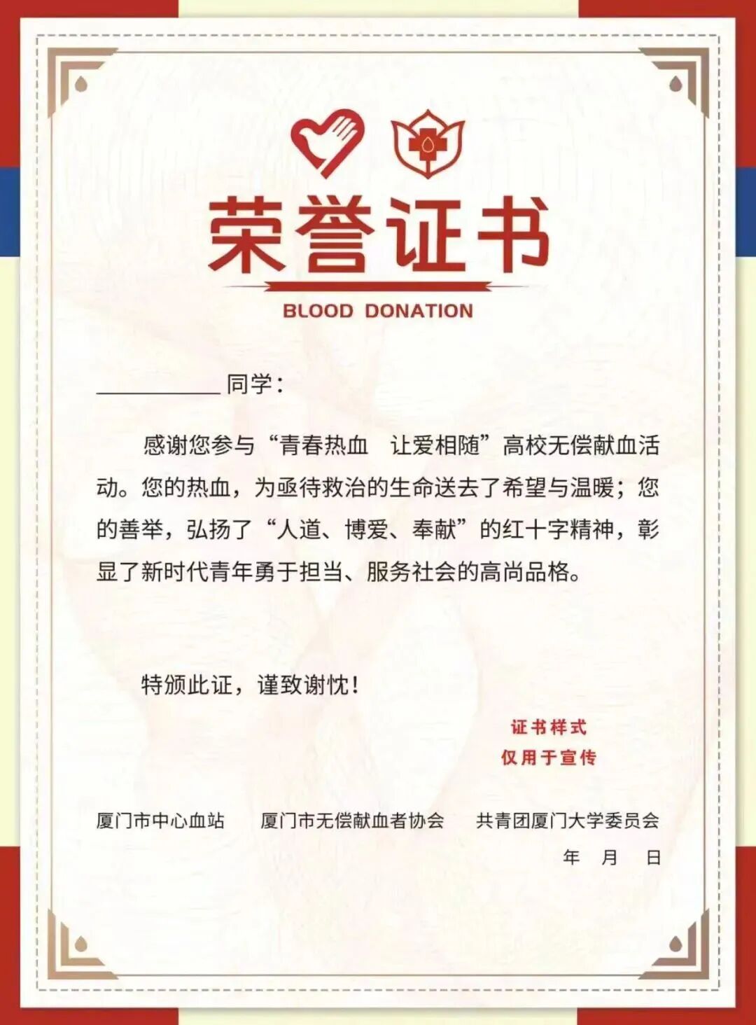 我们将为这一季参加无偿献血的同学颁发荣誉证书!此外还有诸多精美小礼品等着大家~