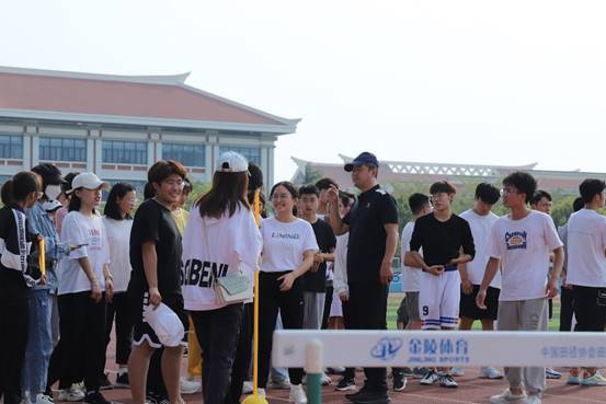 焦芳钱教授首先带领运动员们做准备活动。全身舒展后,紧接着就是热身跑圈。最后,又做了两组高抬腿跑。热身运动这才落下帷幕。