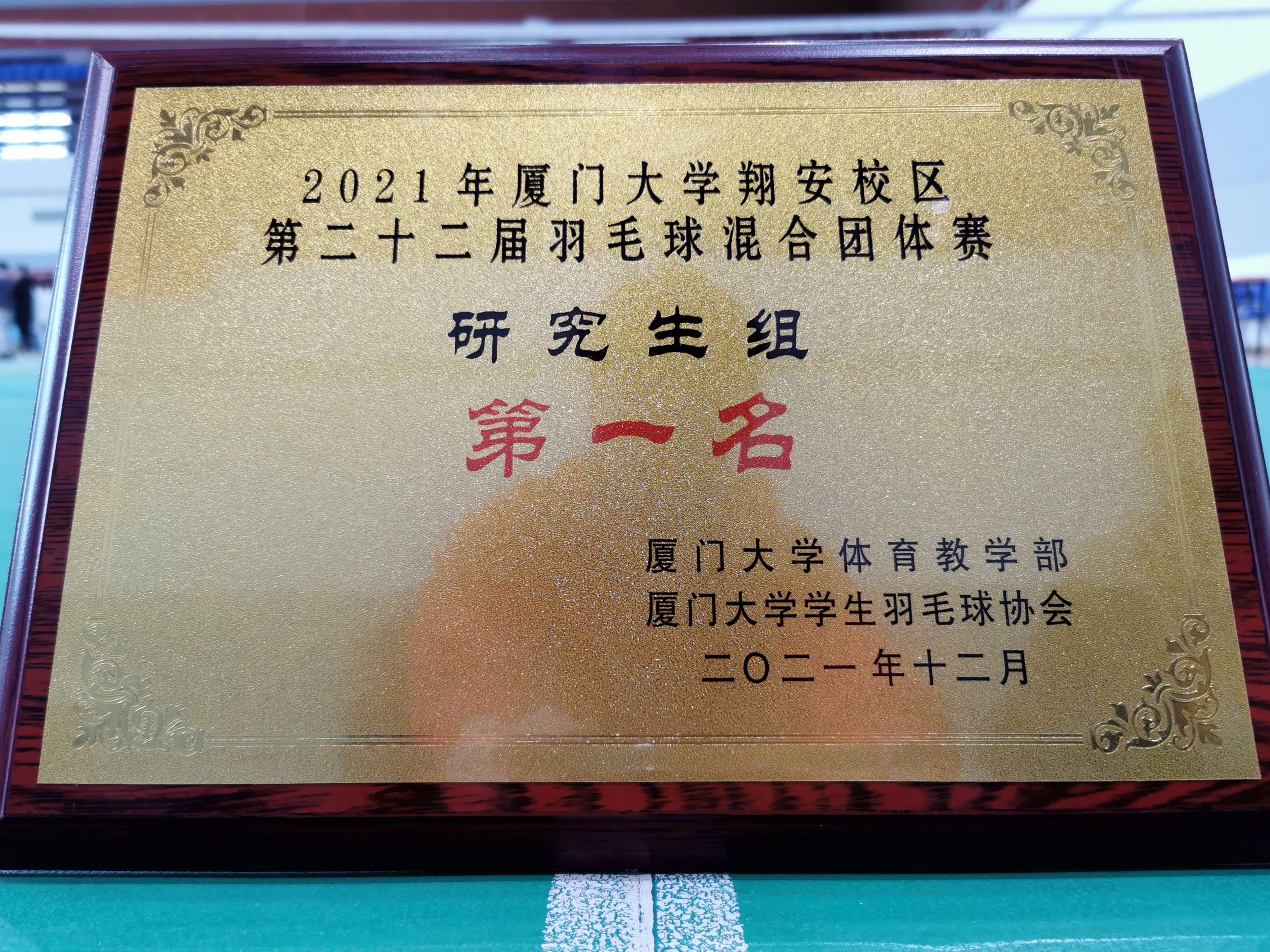 近日,在2021年厦门大学翔安校区第二十二届羽毛球混合团体赛中,我院研究生羽毛球队积极备战,奋勇拼搏,最终突破自我,取得了翔安校区第一名的历史最佳成绩。