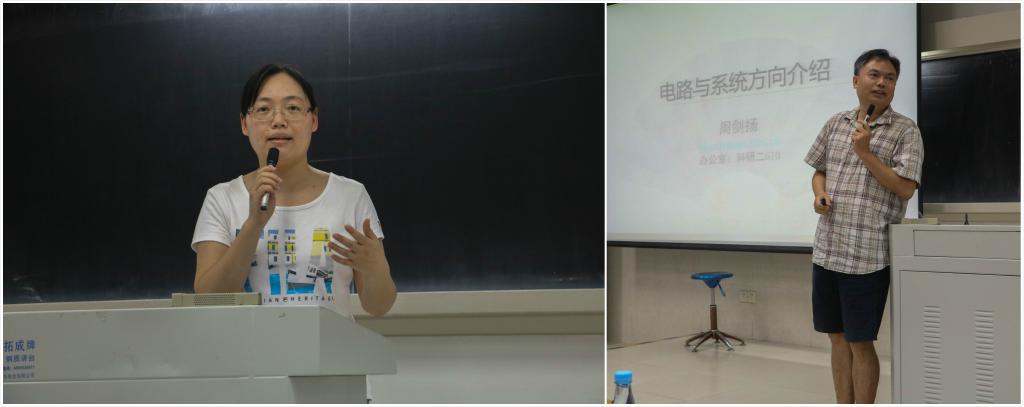 接着,各位老师分别从教学资源、学科应用、课程内容、就业情况等多个方面,简要介绍了电子科学系、电子工程系两个系,具体介绍了电子信息科学与技术、电子信息工程、集成电路设计与集成系统、电磁场与无线技术和微电子科学与工程五个专业的情况。