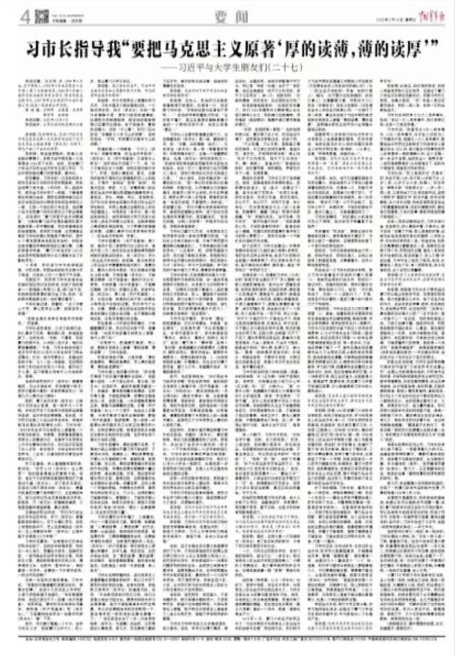 3月16日,《习近平与大学生朋友们》系列采访实录的第二十七篇《习市长指导我“要把马克思主义原著‘厚的读薄,薄的读厚’”》在《中国青年报》刊登,电子学院全体师生在研读后,都积极参与讨论,并根据自身学习与理解展开思考,分享心得体会。