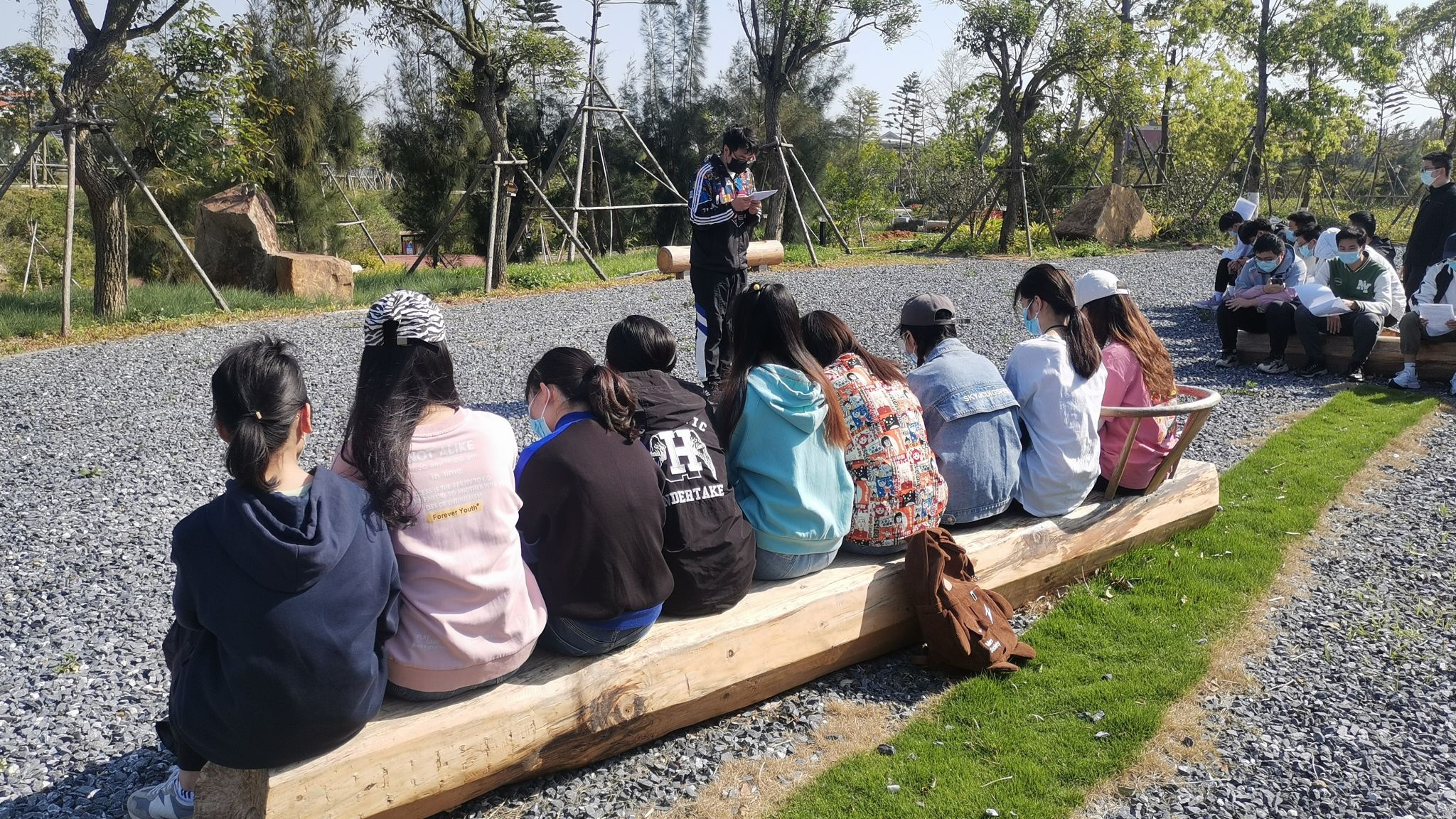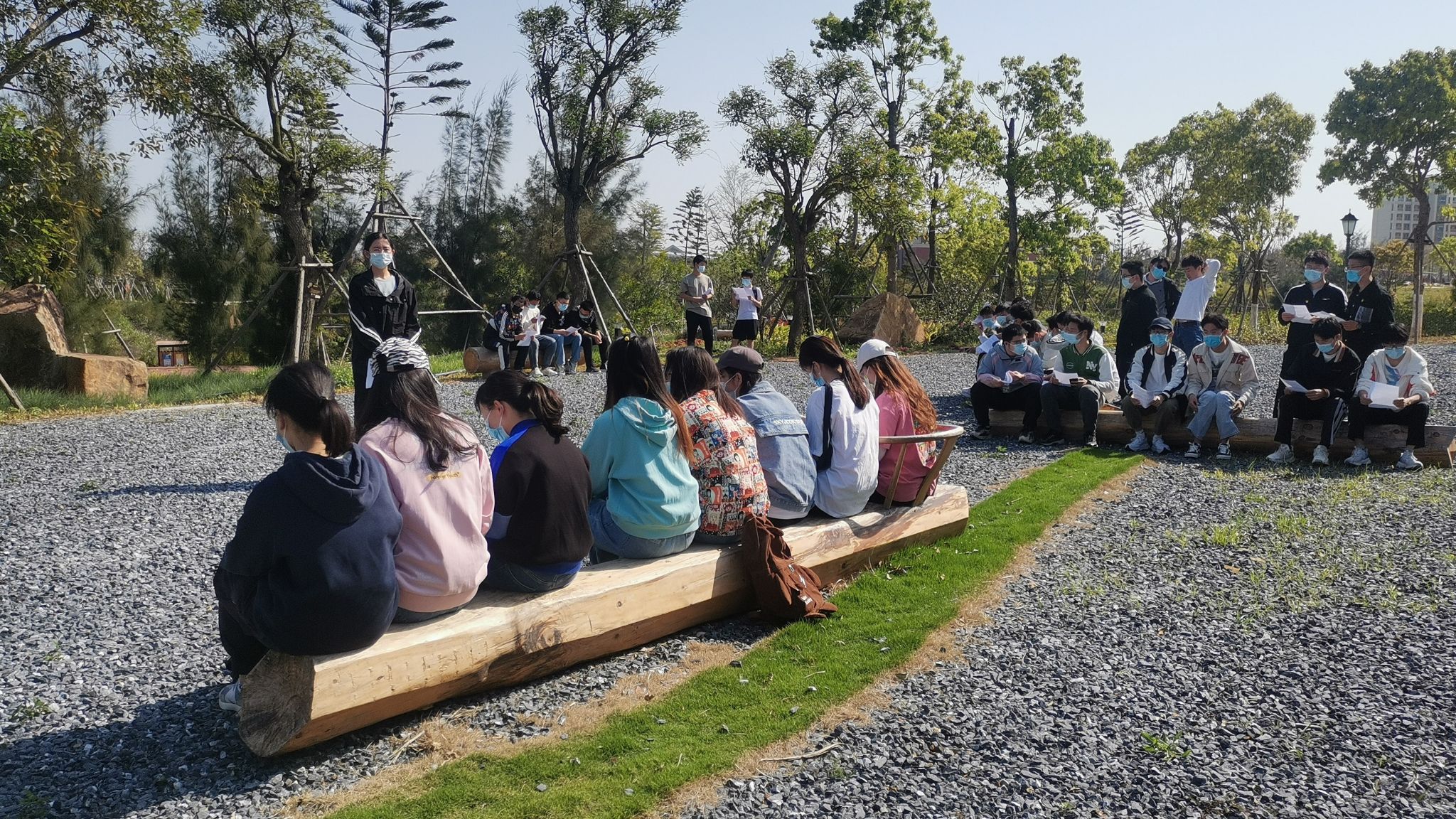 八闽园中的莆田园是电子学院的责任田,由电子学院负责对接管理。面对着花草树木,清泉流水,同学们在这里开始本次的学习。
