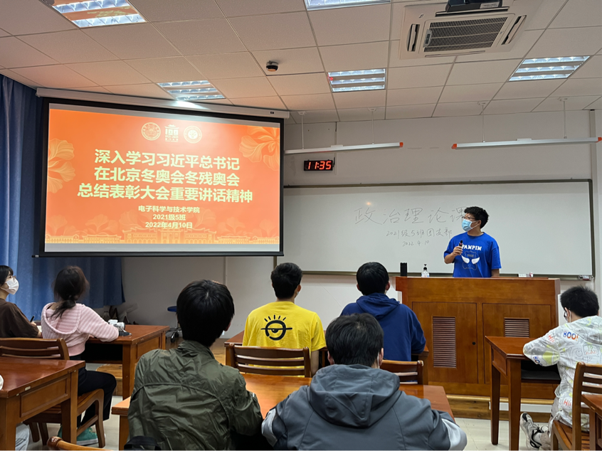 尘雾之微,裨益山海,萤烛末光,增辉岁月。十四年前,北京的盛夏气势恢宏,中国大气磅礴地向世界展现了中华文化。十四年后,冰雪里的京城浪漫含蓄,波澜不惊地轻声诉说着中国力量。依旧是北京,依旧是奥运,那一抹中国红更加明亮,述说着中国的发展,也诉说着中国的骄傲!2022年4月8日,北京冬奥会冬残奥会总结表彰大会在人民大会堂隆重举行,电子科学与技术学院组织师生积极学习并热烈讨论。
