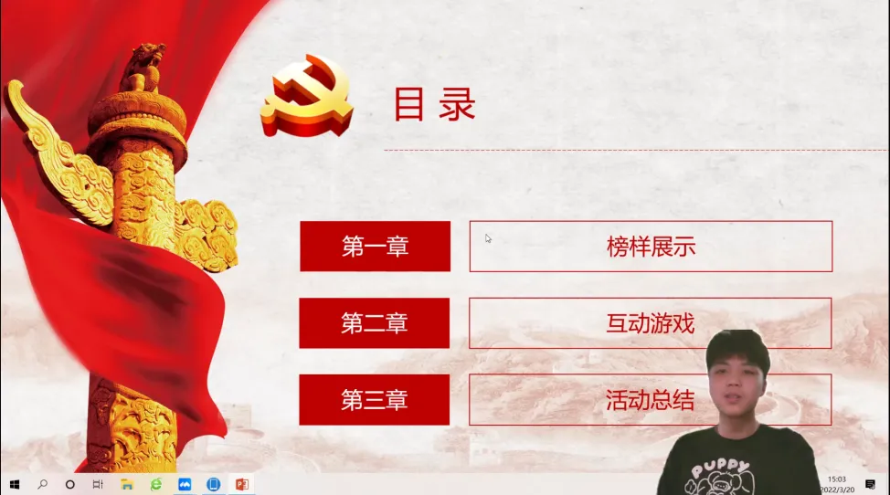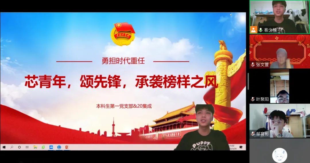先锋是看得见的标杆,榜样是触得到的力量。3月20日下午,电子科学与技术学院通过线上会议举办了“党建带团建,学习中国共产党人精神谱系”系列活动之“芯青年,颂先锋,承袭榜样之风”学习活动。电子科学与技术学院本科生第一党支部党员和2020级集成电路设计与集成系统班级团员共同参与。本次活动有三个议程,首先由易少楠同志向大家分享在不同领域岗位的榜样;然后,为增强活动的互动性,由同学们进行自己心中榜样故事的分享;最后,由易少楠同志对本场活动进行总结。