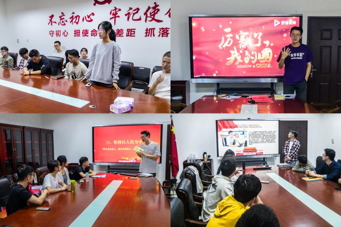 其中专题学习会以党支部书记杨奇志组织主讲,各党员自主串讲的形式进行。先后以“当初入党为什么?”、“我和我的祖国”、“立足岗位作表率”和“今后为事业发展贡献什么”为题,分层开展,力求以当代青年奋发激昂的精神状态和发散灵活的思维方式,推动主题教育走远走深。在主题为“我和我的祖国”的固定党日+学习会上,正式党员董曦带我们走进生活中那些平凡之人的不凡之声,通过将普通的人物的先进事迹与爱国精神相结合,将时政要务与习近平总书记的特色思想相结合,紧扣时代脉搏的同时把伟大的精神投影到了日常生活当中,讲解丝丝入扣、妙语连珠,于渺小之处见伟大,于细微之处见精神,给每位党员带来了不一样的感悟。