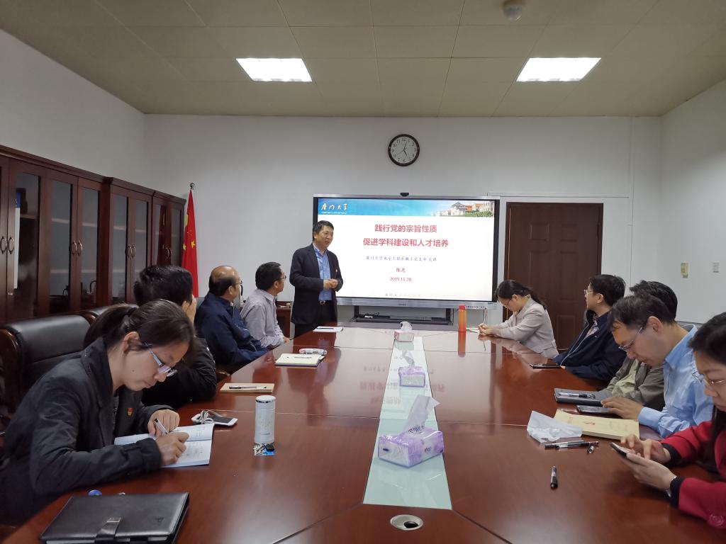 吴国瑛为电子科学系教工党支部、微电子与集成电路系师生联合党支部讲党课《努力做到“七个有力”,切实发挥党支部战斗堡垒作用》,详细解读了《中国共产党支部工作条例(试行)》、厦门大学“对标争先”实施计划中对党支部工作“七个有力”要求。