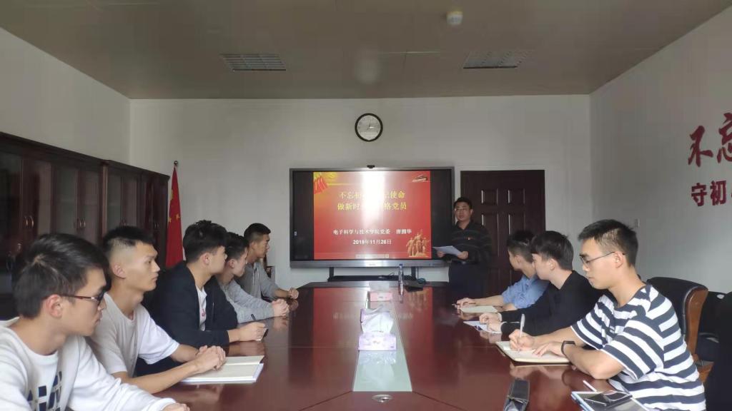 陈忠为电子工程系教工党支部讲党课《践行党的宗旨性质,促进学科建设和人才培养》,详细阐述了广大党员如何在学科建设和人才培养当中践行党的宗旨性质,做到教育报国守初心,立德树人担使命。
