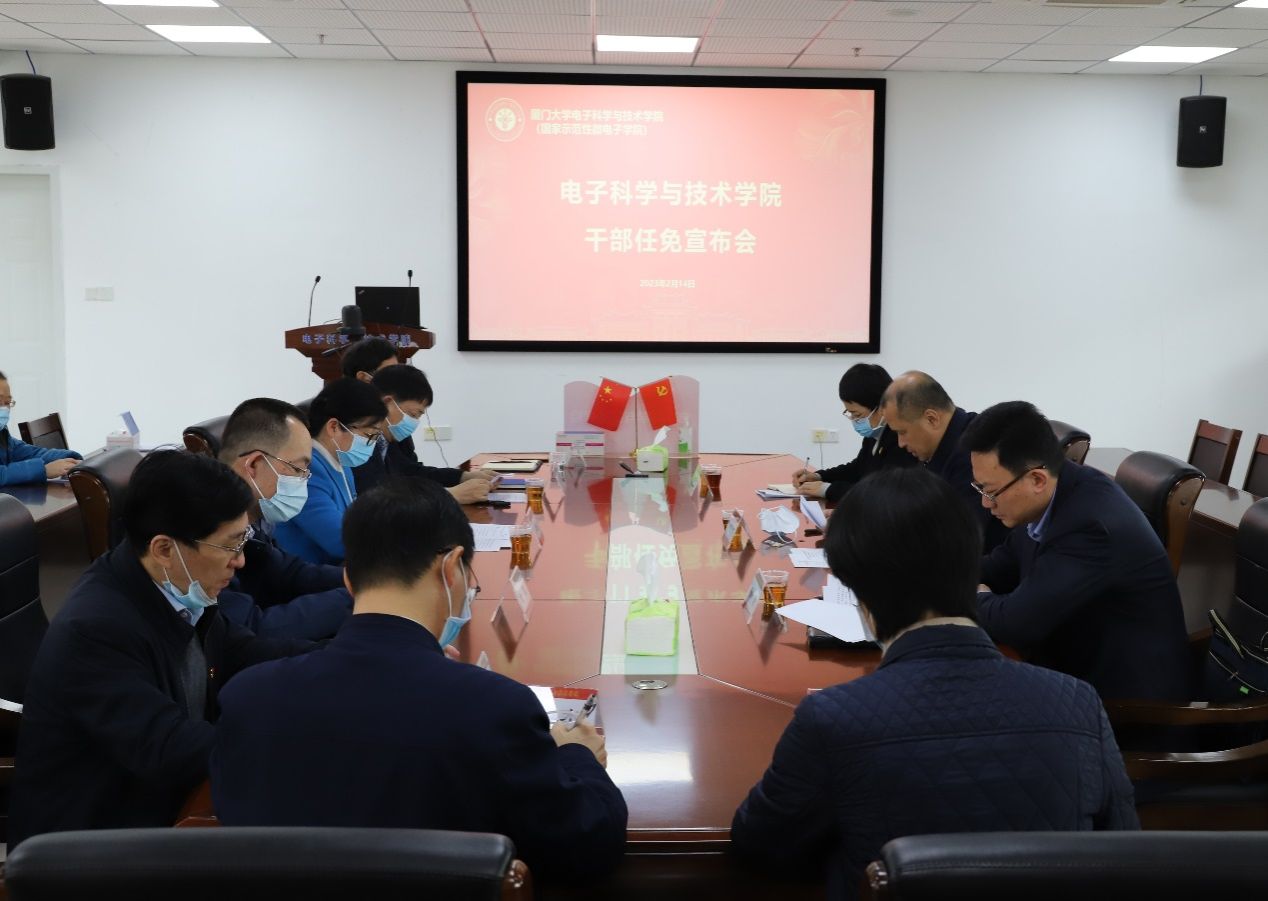 2月14日下午,厦门大学电子科学与技术学院干部任免宣布会在南存钿楼A513会议室召开。校党委常务副书记林东伟,校党委常委、组织部部长、统战部部长孙理,学院党政领导班子成员及教师干部代表参加会议。会议由孙理主持。