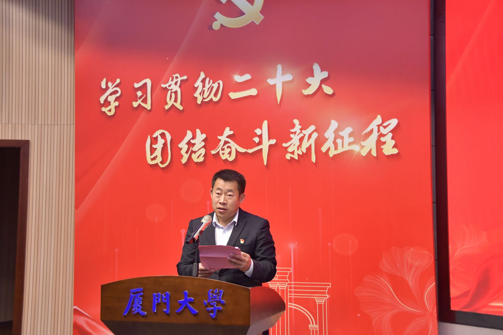 活动伊始,翔安校区管委会副主任马龙致辞,他表示厦大学子要在学思践悟党的二十大精神中坚定理想信念、厚植家国情怀,涵养进取品格、勇攀科学高峰,做有理想、敢担当、能吃苦、肯奋斗的新时代好青年,以实际行动积极投身中国式现代化的伟大实践,推进党的二十大精神在翔安校区落地生根、开花结果。