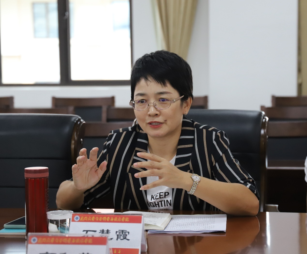10月8日,学校党委常委、宣传部/教师工作部部长高和荣一行到我院调研。调研座谈会在南存钿楼513召开,学院党委书记石慧霞出席了会议,教师工作部副部长杨建中、宣传部副部长杨机像、郑莉以及学院办公室、学工组和团委部分老师共同参加了调研。