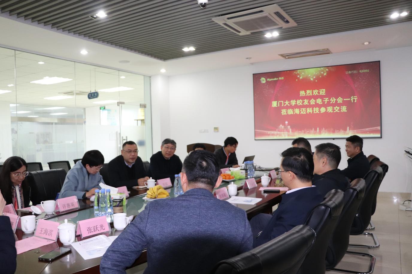 为贯彻落实厦门大学第十二次党代会精神,凝聚校友力量,持续推进学院高质量发展,12月27日,学院党委书记石慧霞,电子分会理事长李希龙,学院副院长方银水,退休教师代表许惠英,学院团委书记胡凡与电子分会部分校友等前往厦门海迈科技股份有限公司和艾德(福建)投资有限公司两家校友企业走访调研。