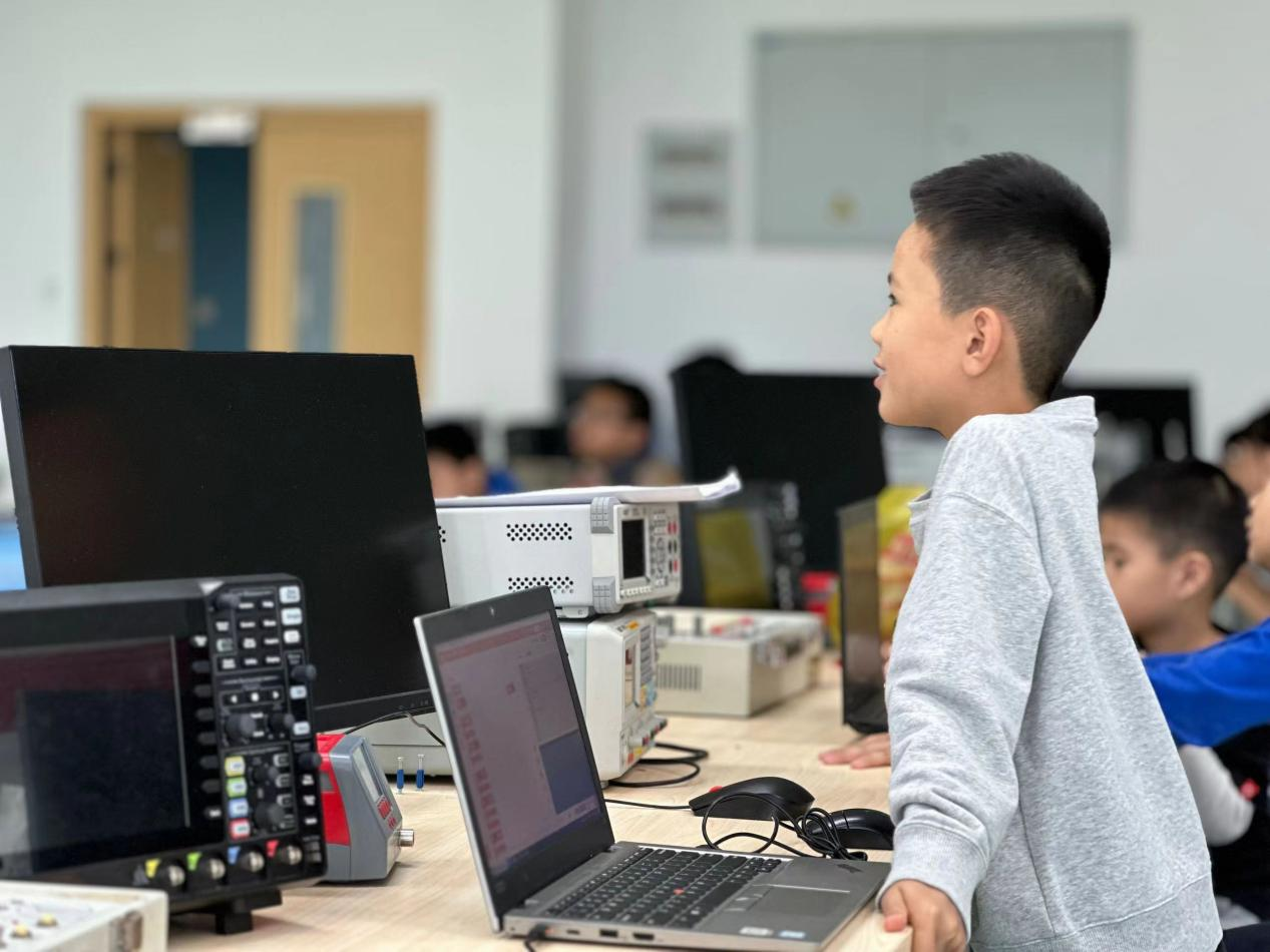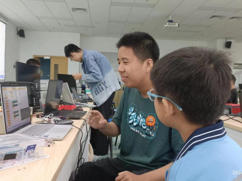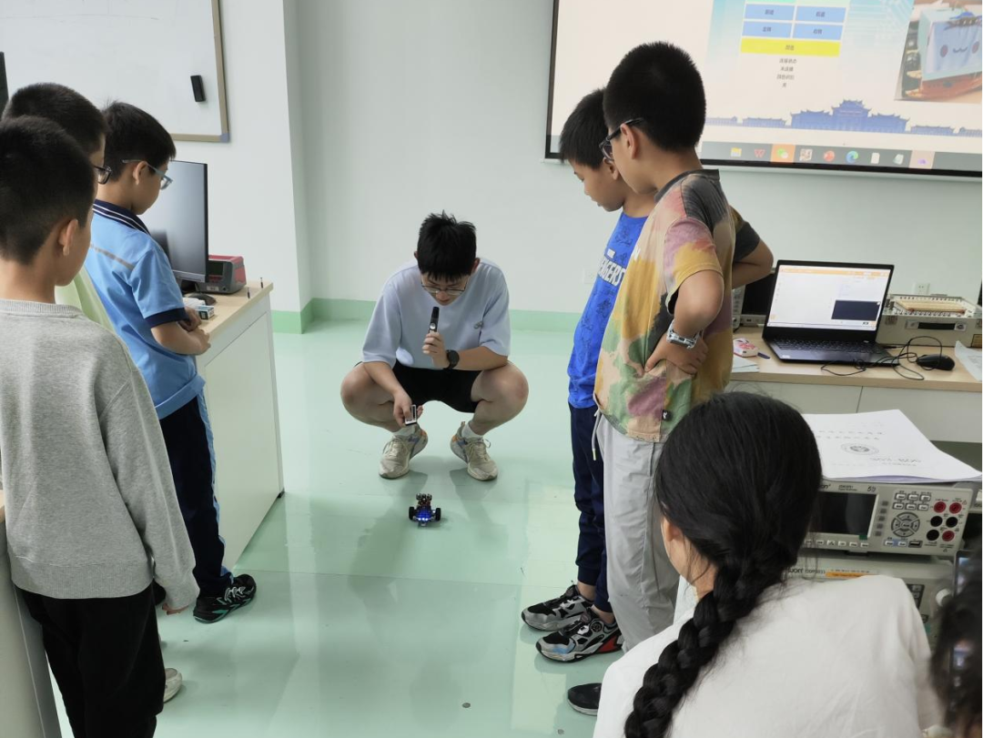 南强电子设计协会负责人、电子科学与技术学院2021级本科生石朴桓为演武小学的同学们详细介绍了本次培训活动的主要内容