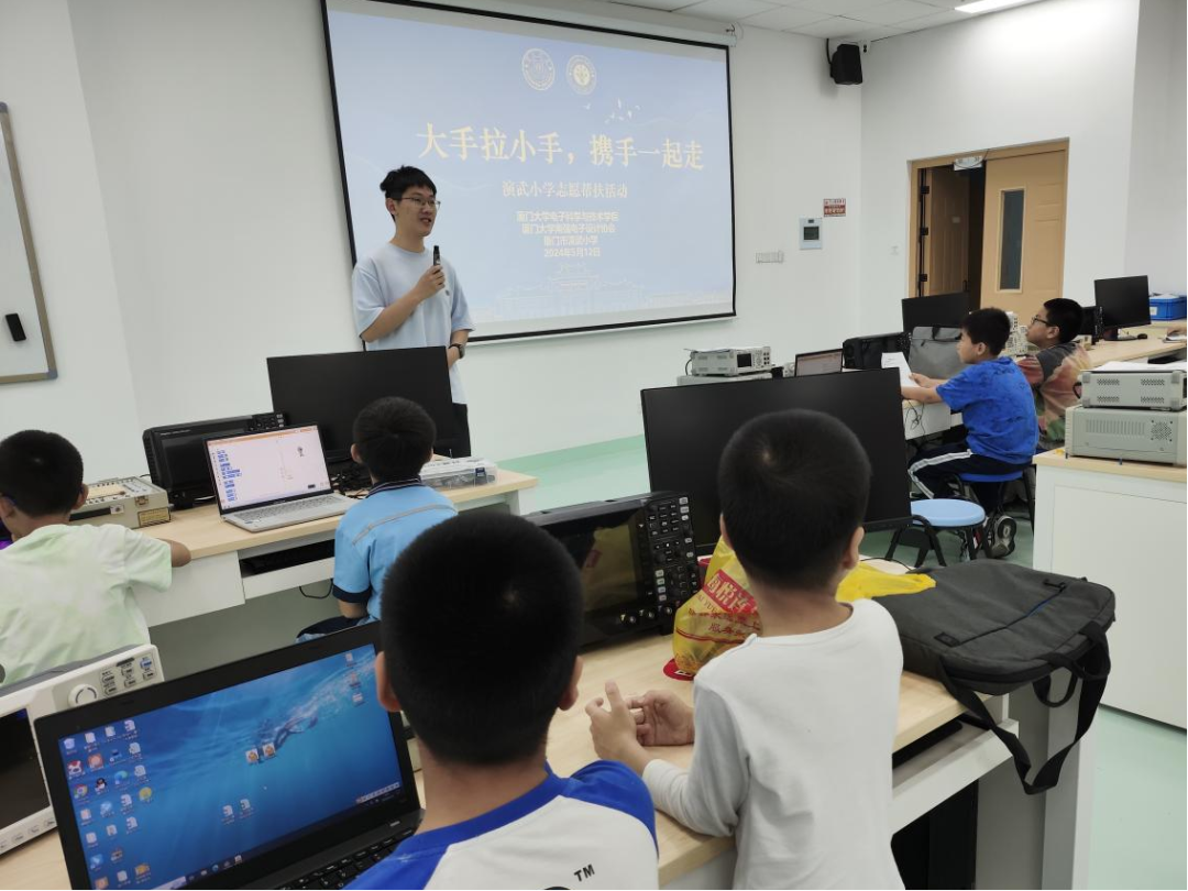为进一步夯实大中小思政一体化,搭建高校与基础教育合作桥梁,打通不同学段之间的壁垒,发扬科创社团“启智开新”功能,激发中小学生创新潜能,5月12日、5月19日、5月26日,学院在厦门大翔安校区新工科大楼303教室开展“党建引领 创新未来”演武小学科技创新培训活动。本次活动由学院实验中心党支部和本科生第一党支部联合主办,南强电子设计协会承办。