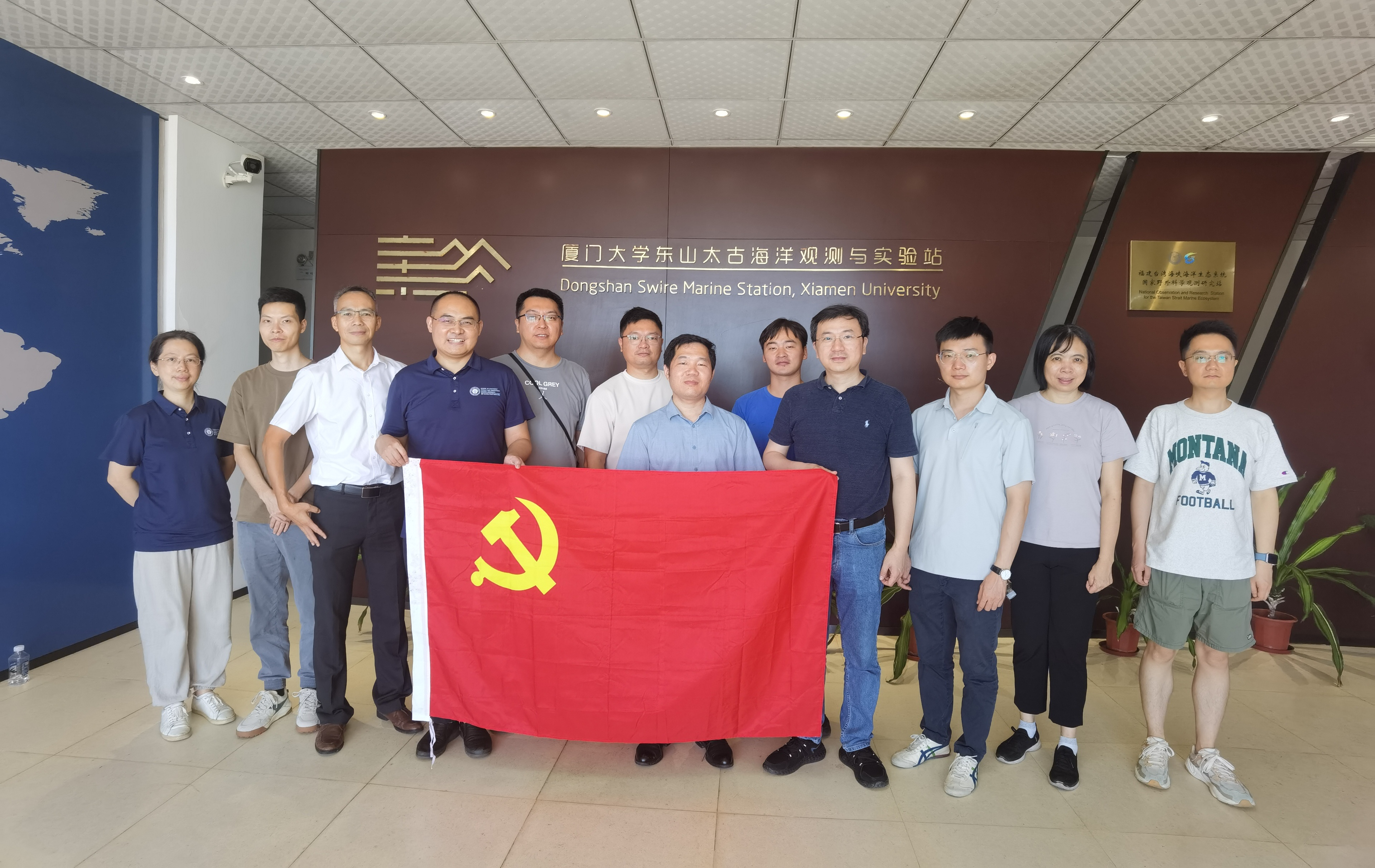 首先,支部教师党员前往厦门大学东山太古海洋观测与实验站暨福建台湾海峡海洋生态系统国家野外科学观测研究站东山实验场(以下简称“东山站”)。在驻站教师刘迟迟、方许闻的详细讲解下,大家了解了东山站监测全球气候变化及由人类引起的环境变化对海洋生态系统的影响,了解如何建设长期稳定的海-陆-气界面环境要素观测平台、开放的海洋科学与技术实验基地及海洋观测仪器的研究与测试基地,以及功能外衍至教学实习、科普教育基地。