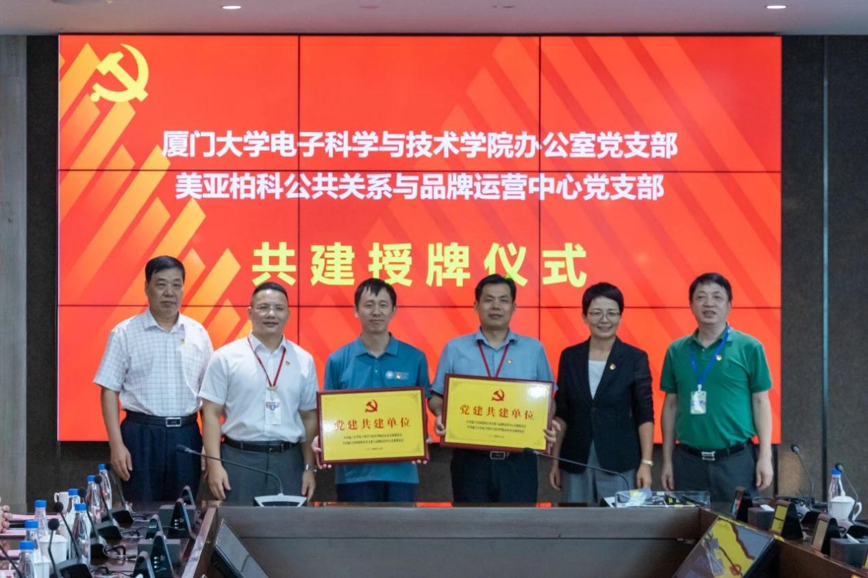 随后,双方党委举行党建共建单位授牌仪式。石慧霞、周成祖分别代表双方党委为学院办公室党支部、美亚柏科公共关系与品牌运营中心党支部授牌,陈忠、王乃谦参与见证授牌仪式。