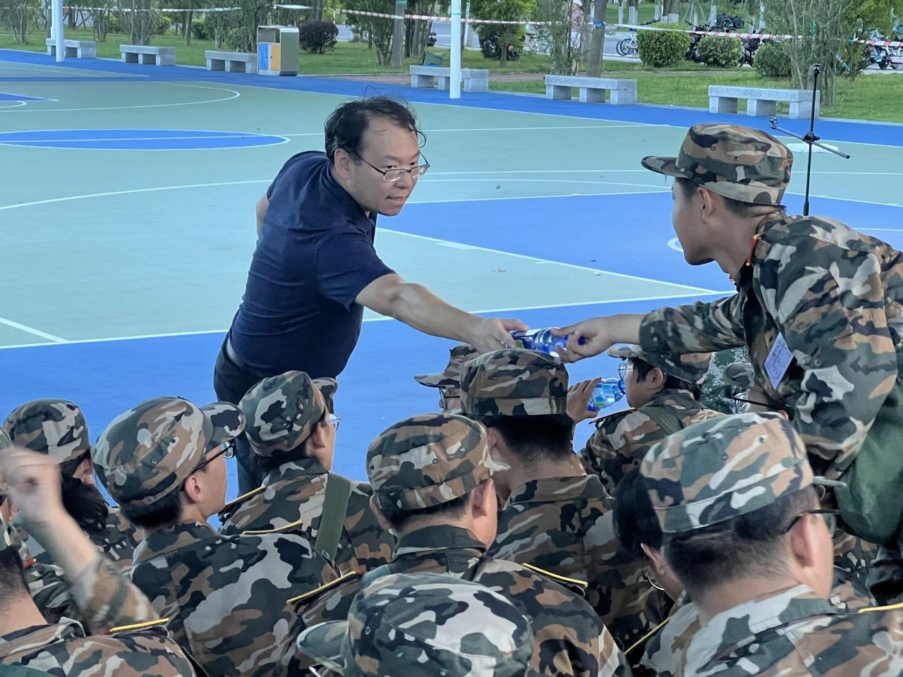 学院为刻苦训练的同学们准备了丰富的慰问品,包括各种水果、饮品等,在酷热的天气中为同学们带来一丝清凉,让大家感受到了来自学院的关怀与鼓励。