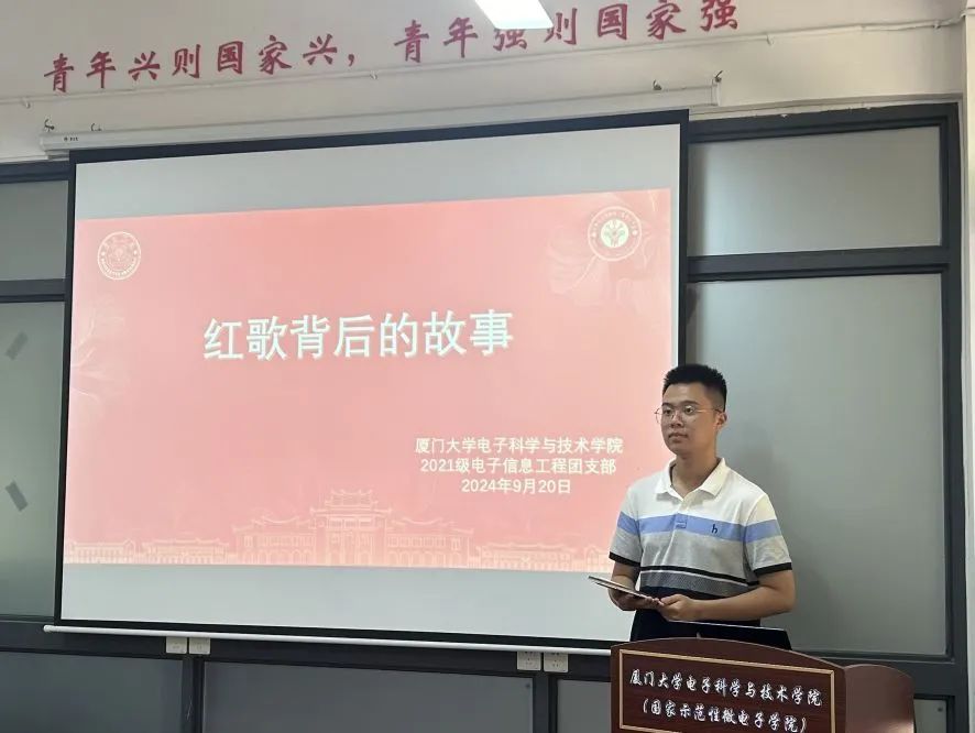 为了响应习近平总书记对于传承红色基因的号召、弘扬红色歌曲文化的当代价值、锻造新的时代精神,学院本科生党支部开展“芯青年 心向党·党史微课”党建带团建系列理论学习。9月20日,活动在博学二一站式共享空间举办,2021级电子信息工程班主任董志鹏、学院本科生党支部部分党员及2021级电子信息工程团支部参与本次学习