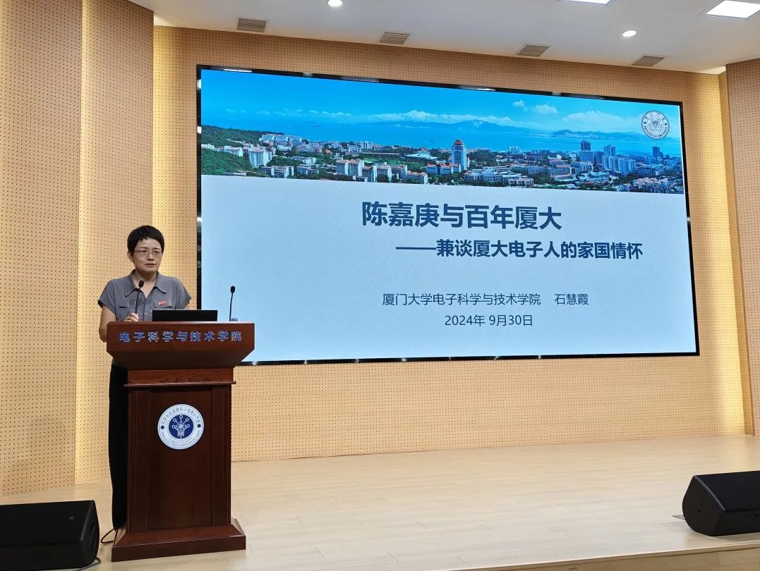 “对于每一个厦大人而言,学习和了解先辈们与厦门大学的故事,是反观个人成长与大学使命关系的重要契机,是理解和体会‘小我’与‘大我’区别的深度机遇,是寻找和挖掘自我成长内驱力的重要支点。”9月30日下午,翔安校区南存钿楼C栋报告厅气氛热烈,不时响起阵阵掌声。学院党委书记石慧霞以《陈嘉庚与百年厦大——兼谈厦大电子人的家国情怀》为题面向我院芯青年讲授新学期的第一堂思政课。活动由学院党委副书记林蕊主持,学院600余名本科生线上线下共同学习。