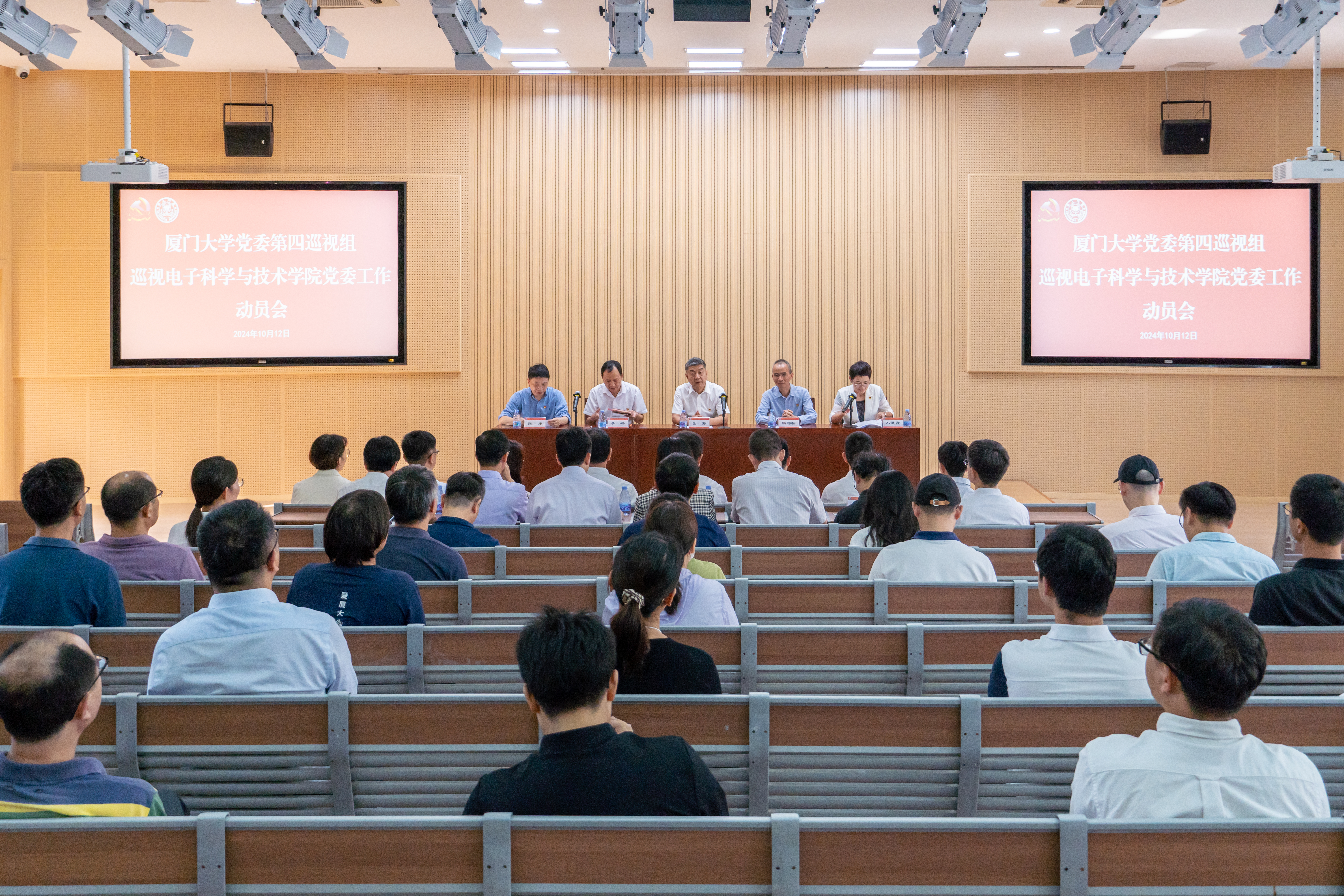 根据十二届校党委巡视工作的总体部署,10月12日下午,校党委第四巡视组巡视电子科学与技术学院党委工作动员会在翔安校区文宣楼A401召开。校党委副书记、纪委书记、国家监委驻厦门大学监察专员全海,第四巡视组组长侯利标,副组长李峰,巡视办主任洪真裁,校党委基层党建工作联络员洪永强,第四巡视组其他成员出席动员会。学院党政班子成员、党委委员,近期退出领导岗位的教职工代表,系部负责人、党支部书记,在职教职工代表参加会议。会议由学院党委书记石慧霞主持。