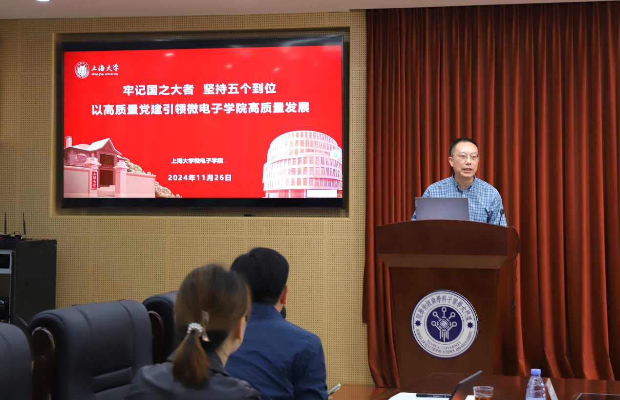 袁铭以“牢记国之大者,坚持五个到位,以高质量党建引领微电子学院高质量发展”为主题,详细介绍了上海大学微电子学院的党建工作开展情况。他表示,微电子学院坚持党建引领,通过加强党的领导、强化统筹协调,确保党组织领导和运行机制到位。学院注重海归教师思想引领与政治把关,强化理论武装与思想政治工作,深化融合联动,推动基层组织制度有效执行。未来,将继续围绕国家战略使命,构建“法人授权、自主办学、实体运作、国际评估”的学院治理体系,以集成电路人才培养改革为重点,奋力书写高质量党建引领下的发展新篇章。