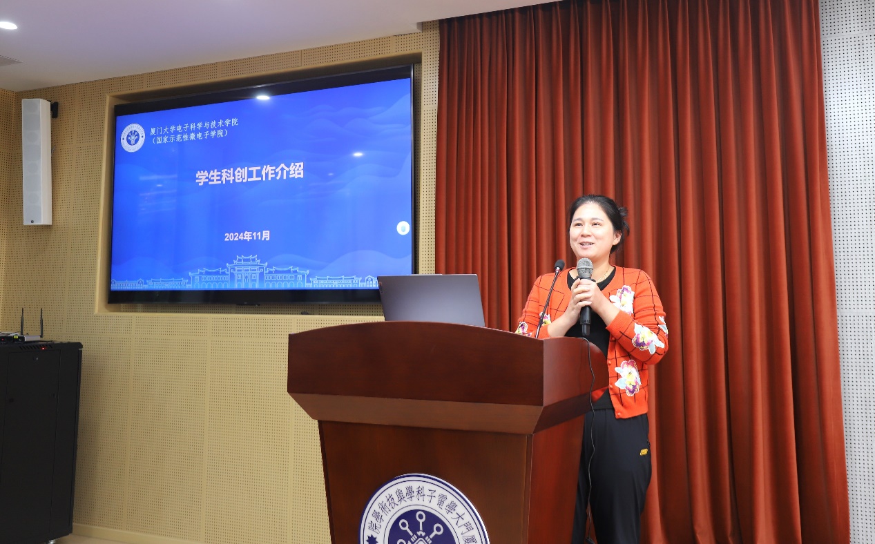 刘锦锗分享了厦门大学电子科学与技术学院学生科创工作基本情况。学院通过搭建多层次实践平台,聚焦专业赛事打造科创精品,并坚持问题导向,有针对性地反复打磨学生参赛作品,为学生科创竞赛给予最大支持,培育学生科技创新能力和团队协作精神。