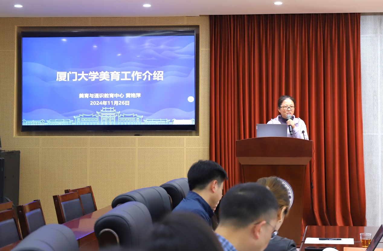 黄艳萍详细介绍了厦门大学美育工作情况。厦门大学美育工作小组建立了党委统一领导、多部门联动、校院协同的工作新机制,将公共美育与专业美育深度融合。打造“课堂教学、课外实践、校园文化”三位一体美育体系,传承文化根脉、厚植家国情怀,培养德智体美劳全面发展的时代新人,着力提升学生发现美、感受美、表现美、鉴赏美、创造美的能力。