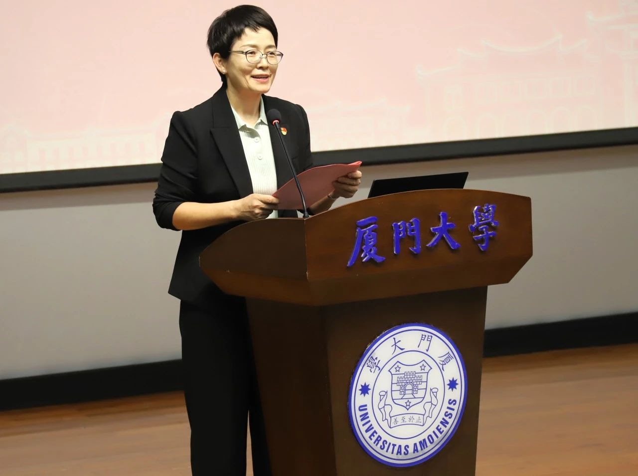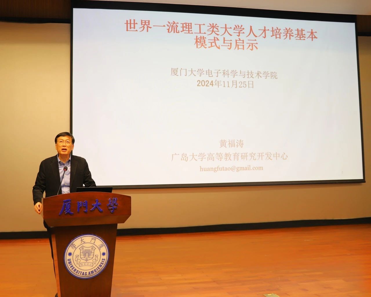 为深入学习贯彻习近平总书记在全国教育大会上的重要讲话精神,进一步加强党员党性修养,提升党员教育培训工作实效,11月25日下午,电子科学与技术学院在翔安校区德旺图书馆1号报告厅举办党委理论学习中心组学习(扩大)会议暨“嘉德名家讲坛”首讲。日本广岛大学高等教育研究开发中心终身教授、厦门大学校友黄福涛,厦门嘉德电子与集成电路研究院院长、厦门大学校友会电子分会会长李希龙学长,校党委第四巡视组庄曦同志,电子科学与技术学院院长陈忠教授等出席活动。学院党委理论学习中心组全体成员、全体师生党员以及“红心向党”成长营全体入党积极分子等参加活动。活动由学院党委书记石慧霞主持。