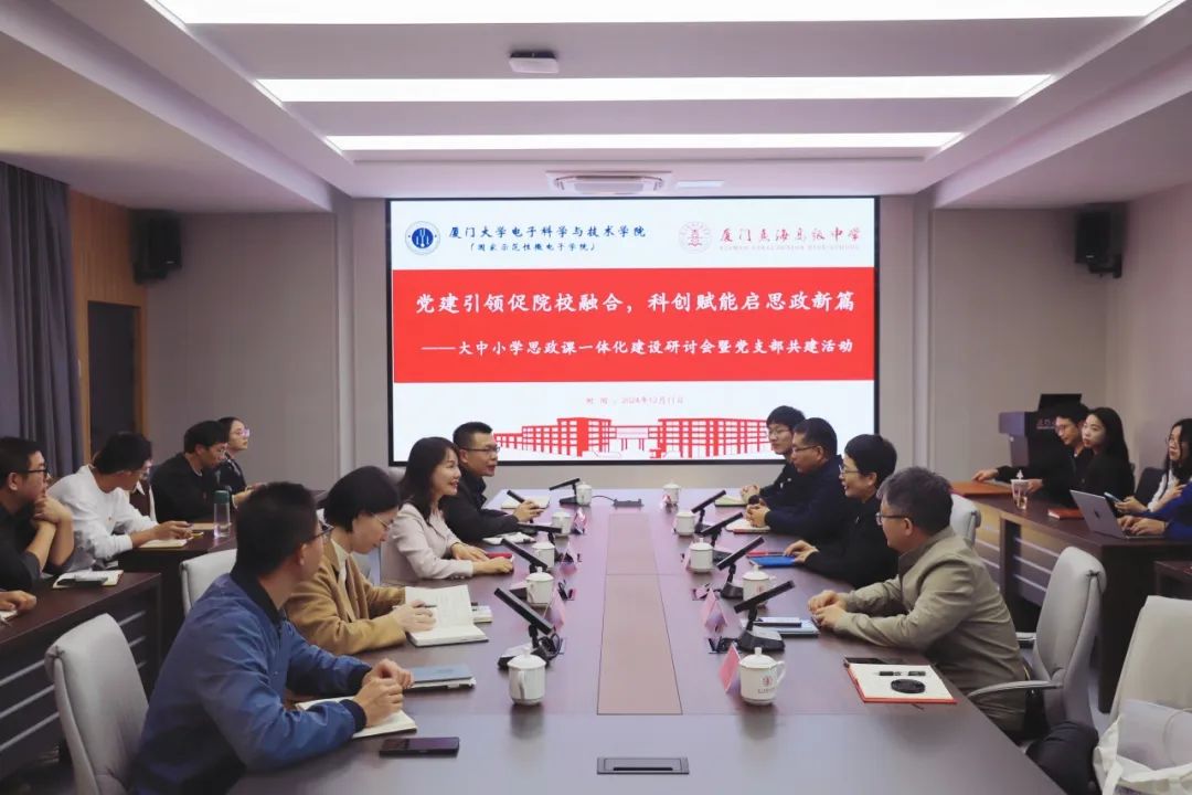 为进一步探索以科创领航,推进大中小学思政课一体化建设,12月11日,大中小学思政课一体化建设研讨会暨党支部共建活动在厦门熹海高级中学举行。学院党委书记石慧霞,海沧区教育局党建办负责人许军凉,厦门熹海高级中学书记、校长郑希出席活动,学院师生党员代表,厦门熹海高级中学行政班子、全体党员、思政课教师、科创中心成员参加活动。