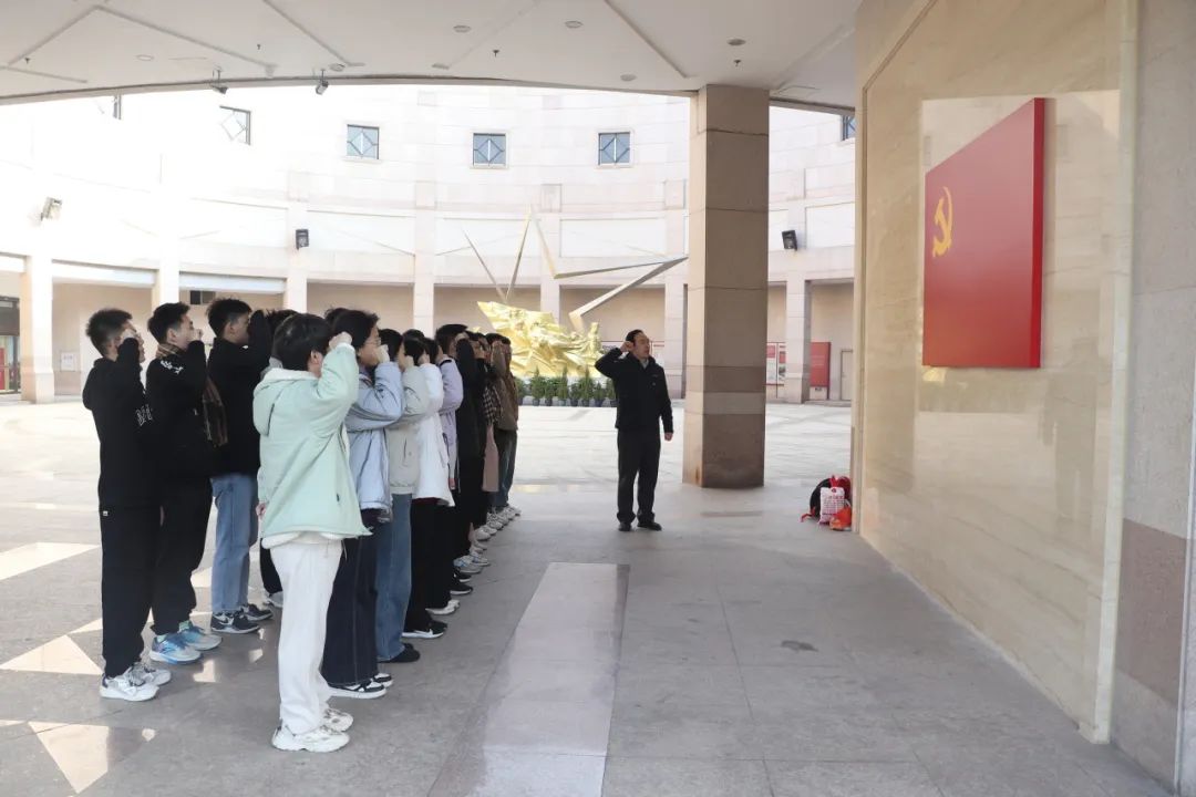 韩海雄带领全体成员在党旗前庄严宣誓。面对鲜红的党旗,全体党员整齐列队、高举右拳,重温入党誓词。铿锵有力的誓言在纪念馆前回响,党员们深受触动,立志将继续传承革命精神,勇担时代责任,在科研创新与社会服务的道路上不断追求卓越,为实现中华民族的伟大复兴贡献青春力量。