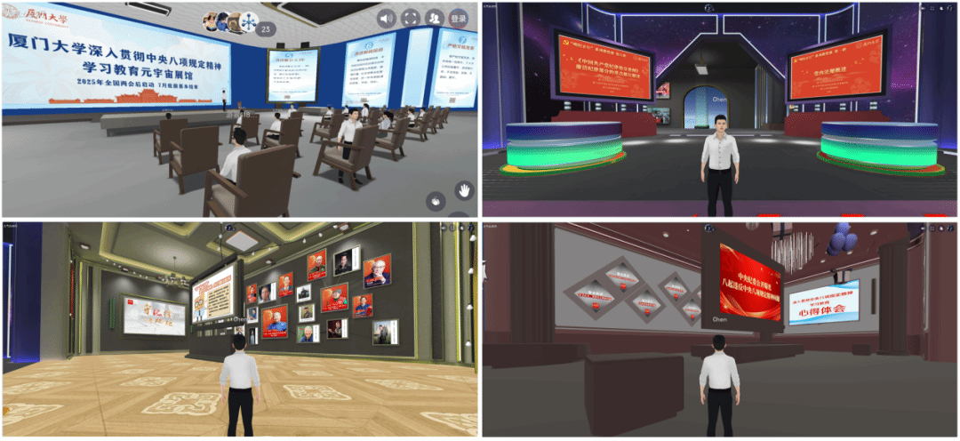 党规党纪学生研习社党支部书记张玉洁向党员们介绍了厦门大学深入贯彻中央八项规定精神学习教育元宇宙展馆。该展馆兼具教学展览与线上会议功能,围绕学习教育主线,融合先进典型、反面警示案例,以及 “案说八规” 微视频、“明纪正行” 微党课等内容,形式丰富多元。主展厅的投屏功能,能让党员操控虚拟人物开展学习活动,实现 “线上会场” 互动。随后,党员们扫码进入展馆,借助虚拟现实技术开启沉浸式学习。在虚拟空间里,他们回顾中央八项规定精神的发展历程,通过丰富的图文资料、案例剖析和理论解读,全方位、立体化地理解其内涵与意义。新颖的学习形式打破时空限制,让学习更具趣味性与实效性。党员们纷纷表示,这种创新模式不仅增添了学习乐趣,更深化了对中央八项规定精神的理解与记忆,让纪律意识更加入脑入心。