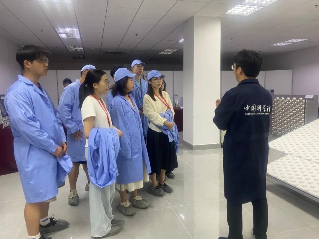 同日下午,大家走进中国科学院微小卫星创新研究院参观学习。在院史馆,讲解员通过展示丰富的卫星模型,回顾了我国卫星事业发展历程。在卫星研制的超大暗室和脉动产线,同学们近距离观察了微小卫星从设计到总装的严苛流程。