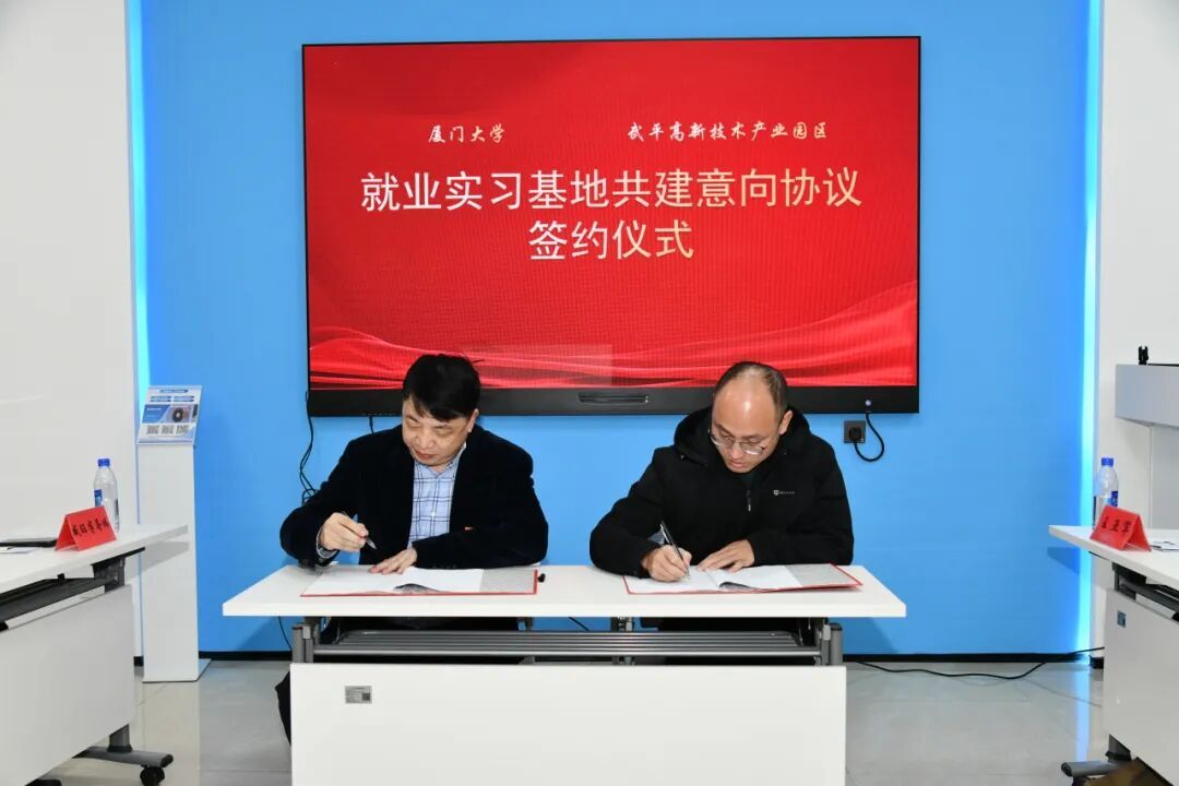 在全场见证下,双方签署了《厦门大学-武平高新区就业实习基地共建意向协议》,并举行了党建共建授牌仪式,双方正式建立起“党建引领、人才共育、资源共享”的校地合作新模式。