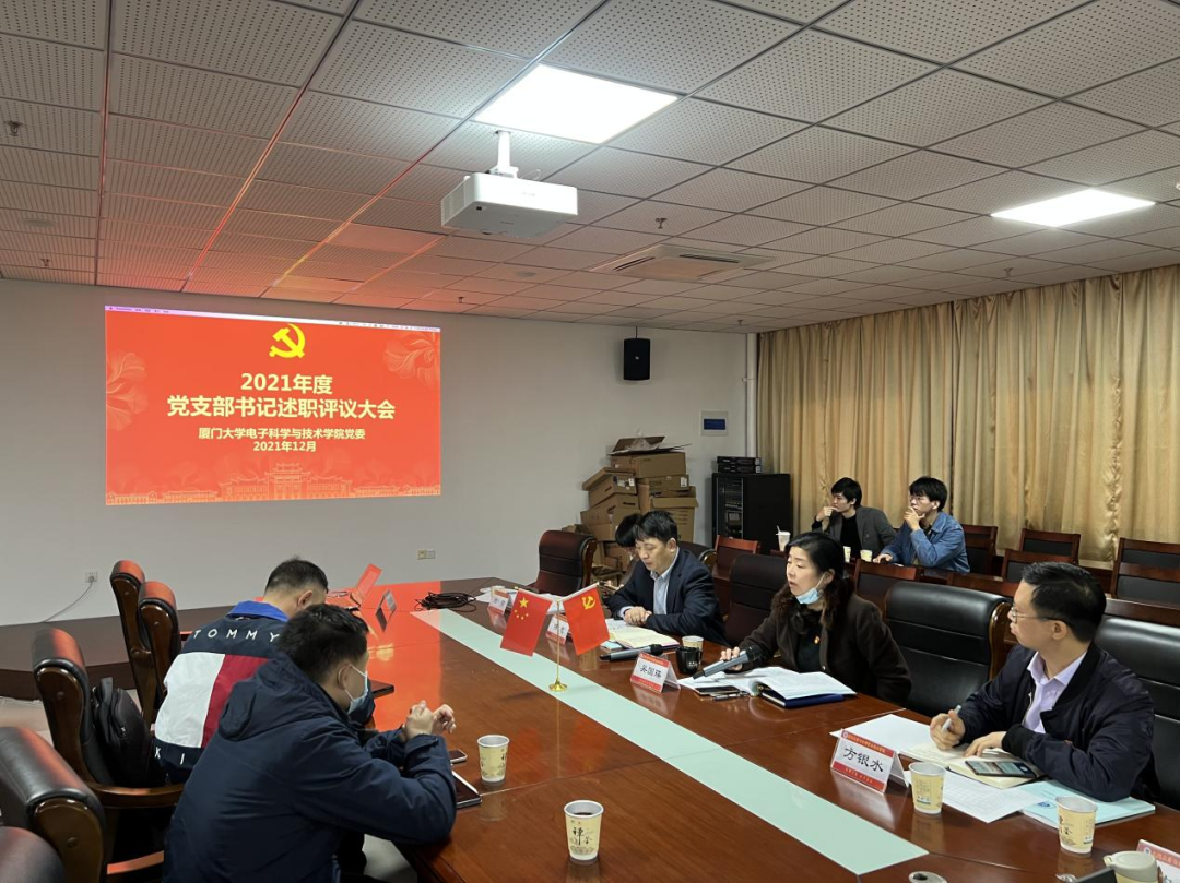 为深入学习贯彻习近平新时代中国特色社会主义思想,党的十九大和十九届二中、三中、四中、五中、六中全会精神,加强基层党组织建设,根据学校党委的统一要求和部署,2021年12月31日,电子科学与技术学院党委在南存钿楼A513会议室开展2021年度党支部书记述职评议大会。院党委书记吴国瑛,院长陈忠,党委副书记方银水、郑莉,党委委员沈桂平等领导及全院党支部书记参加。