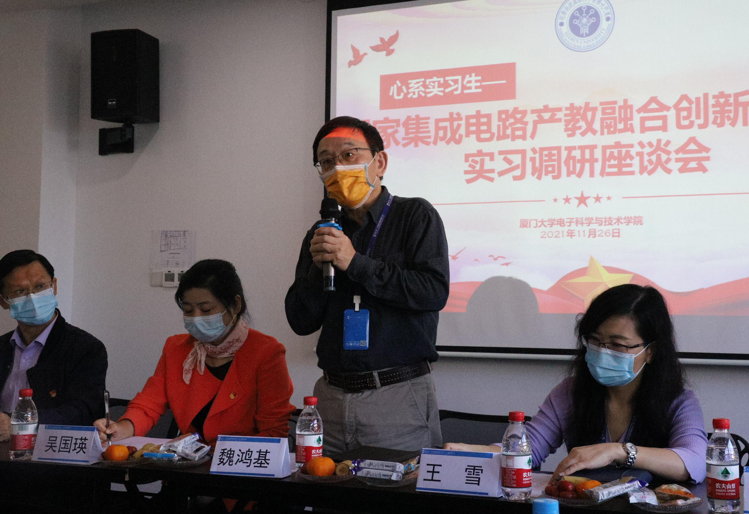 为进一步加强校企合作,推进平台班学生企业实习,11月26日上午,学院党委书记吴国瑛,副书记方银水率平台班党支部到三安集成电路有限公司、三安光电有限公司开展校企座谈会,调研学生实习情况。学院团委副书记徐爱平、平台班党支部书记肖舒文以及校内导师代表共同参加。