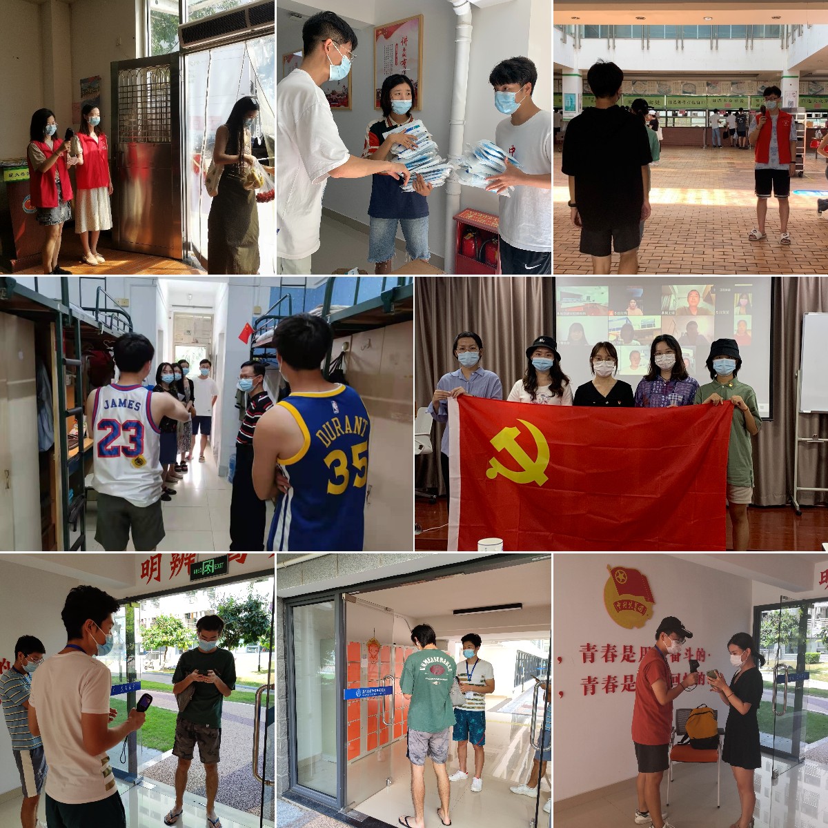在思明校区,学院研究生党员主动加入了海韵8、12、14等多个抗疫先锋临时党支部,并担任支部书记、组织委员、宣传委员等职务,多次走访学生宿舍、了解学生需要、关心学生心理状况,督导垃圾分类,还为海韵毕业班学生预约面试房间。学院研究生党员也积极加入到海韵学生食堂和学习共享空间的志愿者队伍中,协助进行体温测量、维持秩序、引导人群和提醒落座间距。虽然在疫情期间无法前往实验室进行科学研究,但是研究生党员们积极投身抗疫斗争,用具体行动诠释了共产党员的担当。