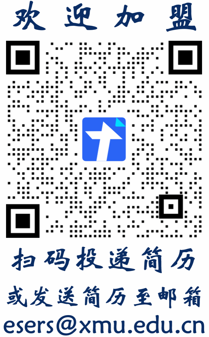 学院常年招聘优秀青年人才,欢迎有意向加盟的人才将个人简历、学术成果简述等材料发送至学院招聘邮箱esers@xmu.edu.cn。学院对应聘者简历材料进行筛选、评估,并通知意向人选面试。