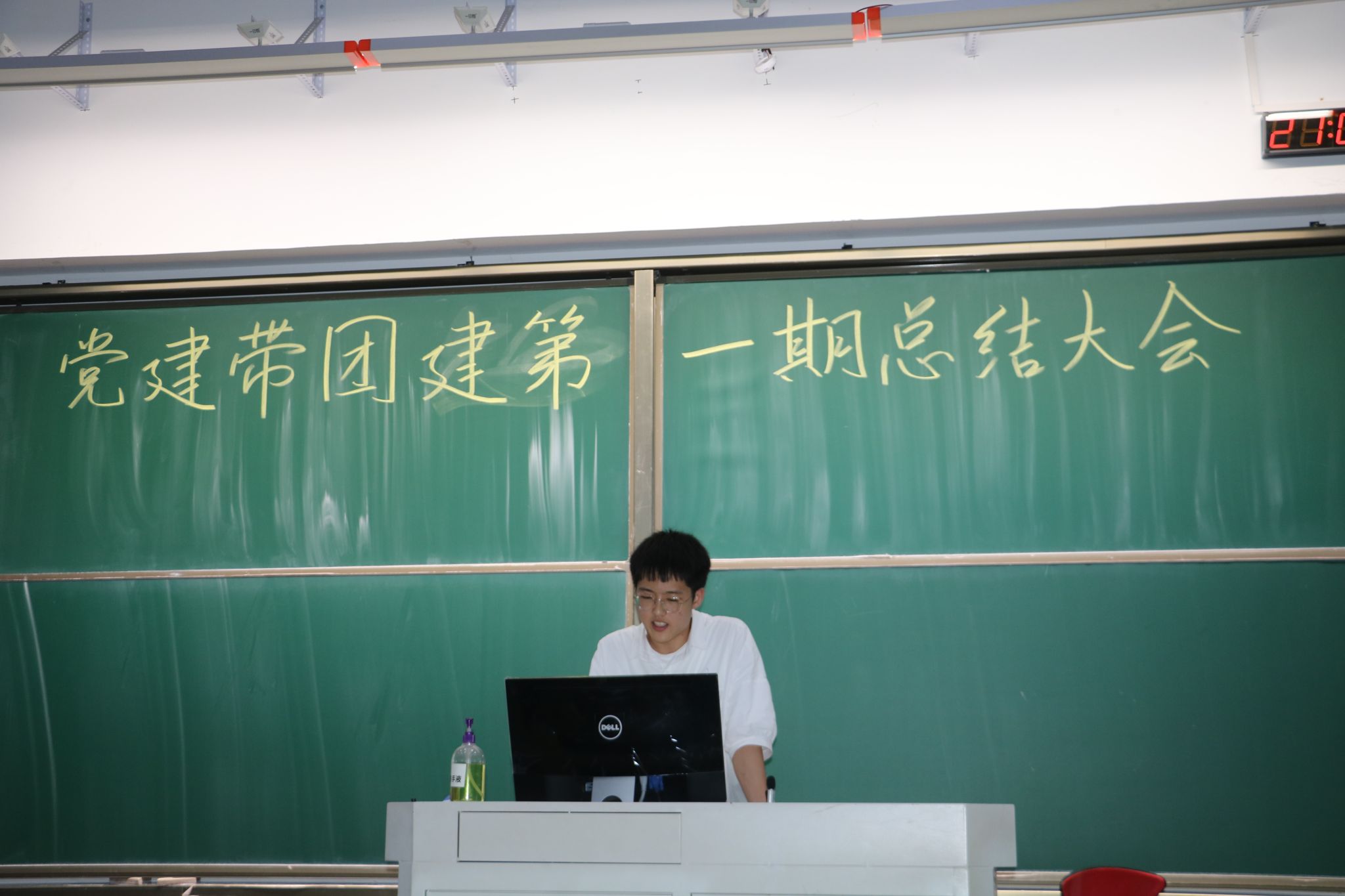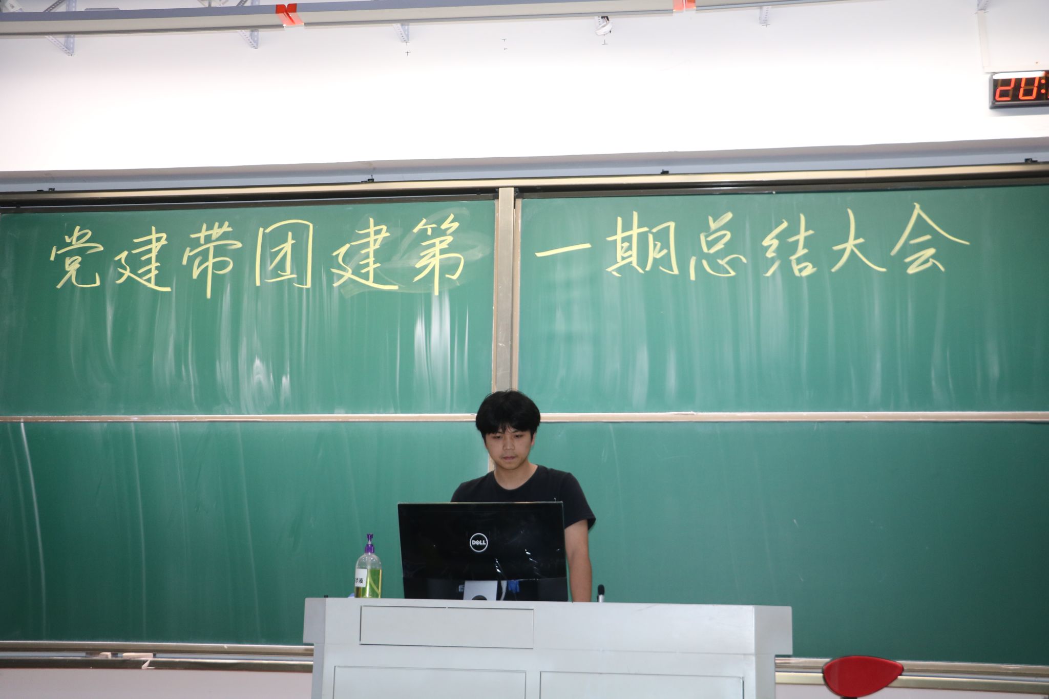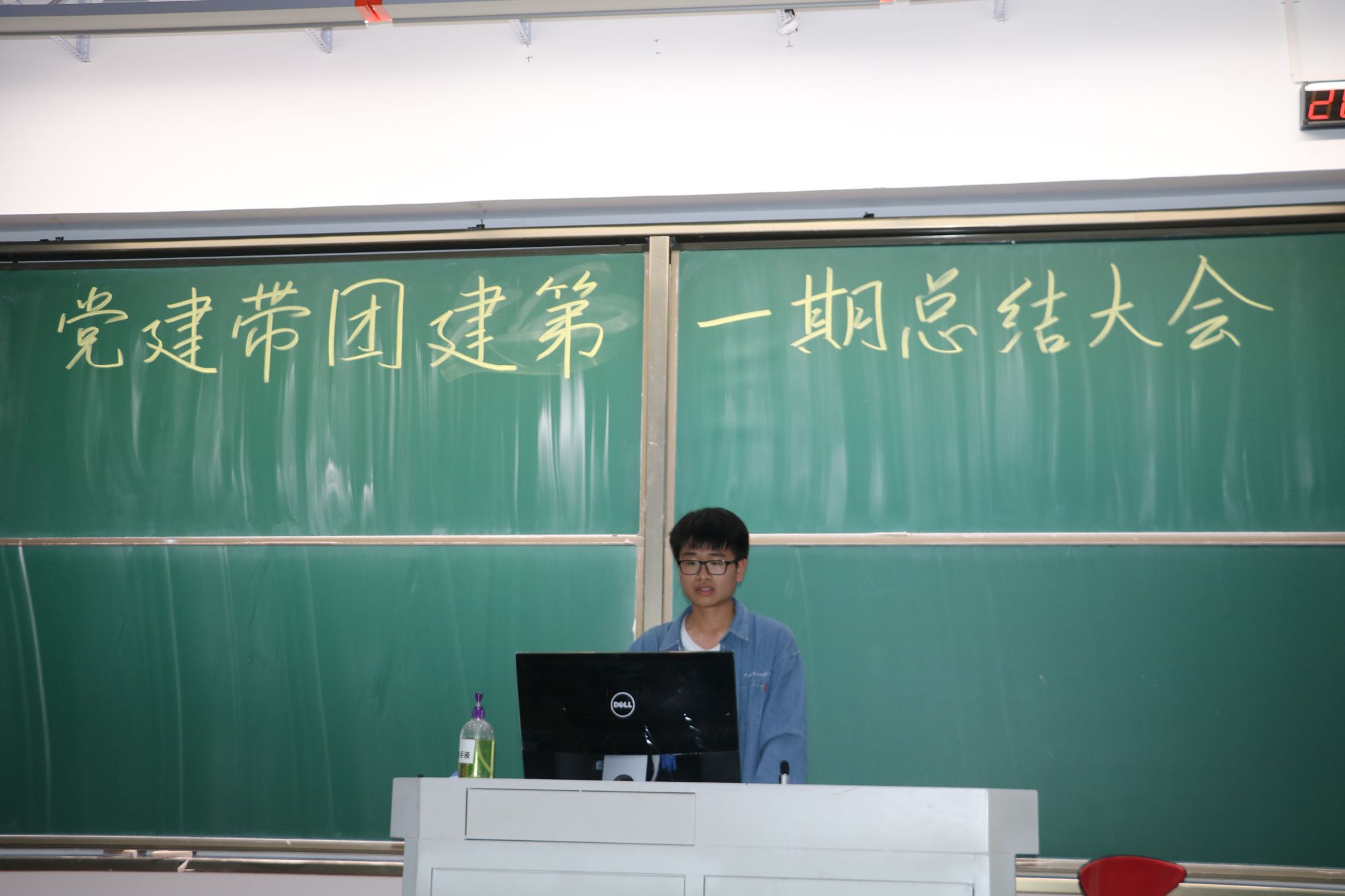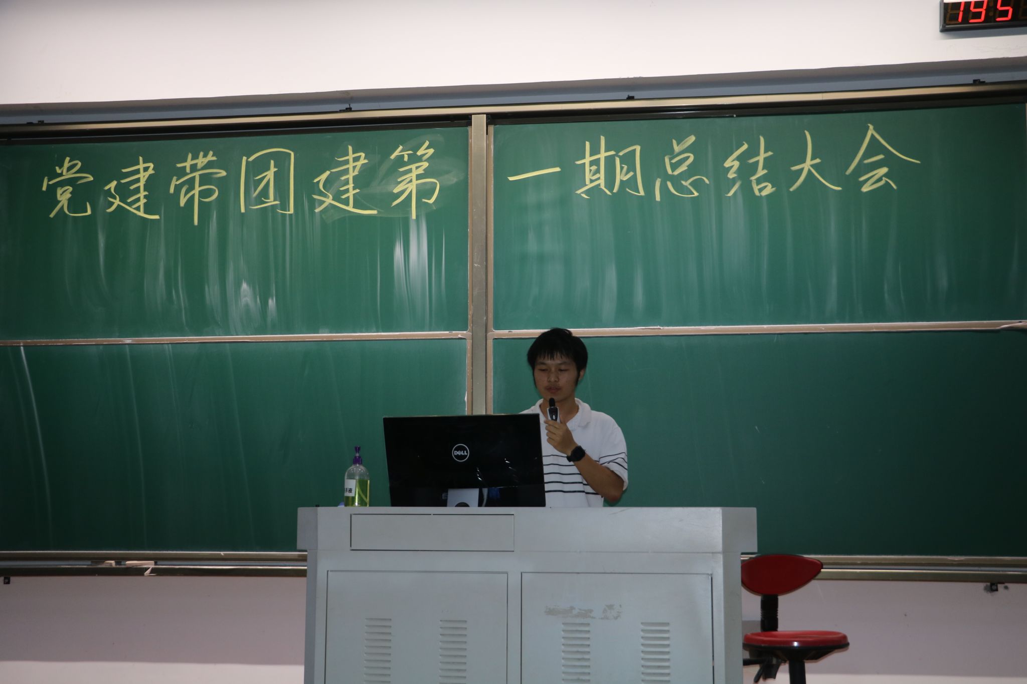 本科生第一党支部预备党员黄强开来同志作为党员代表做党支部的成果展示和心得分享。他通过一段视频对活动开展以来的情况进行了总结展示。接着,他从党的建设、团的建设以及同学们自身发展的三个方面进行分享:党建带团建有着“凝聚青年、服务大局、搭建桥梁、从严治团”的意义,我们要坚持党建带团建,使团的建设纳入党的建设总体规划之中,积极推进团建工作创新,才能使党团组织充满感召力、凝聚力、战斗力,为党组织建设培养更多新生力量和后备军。