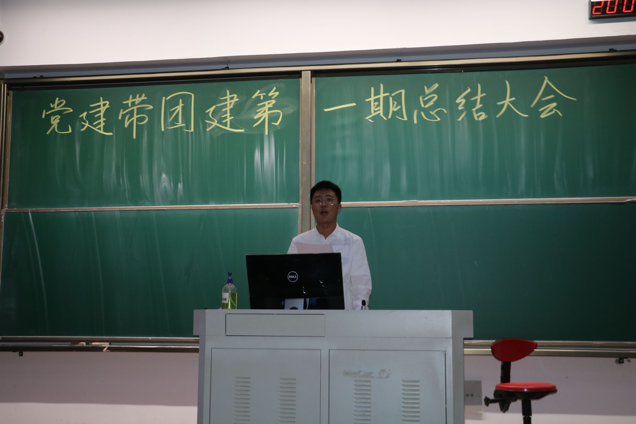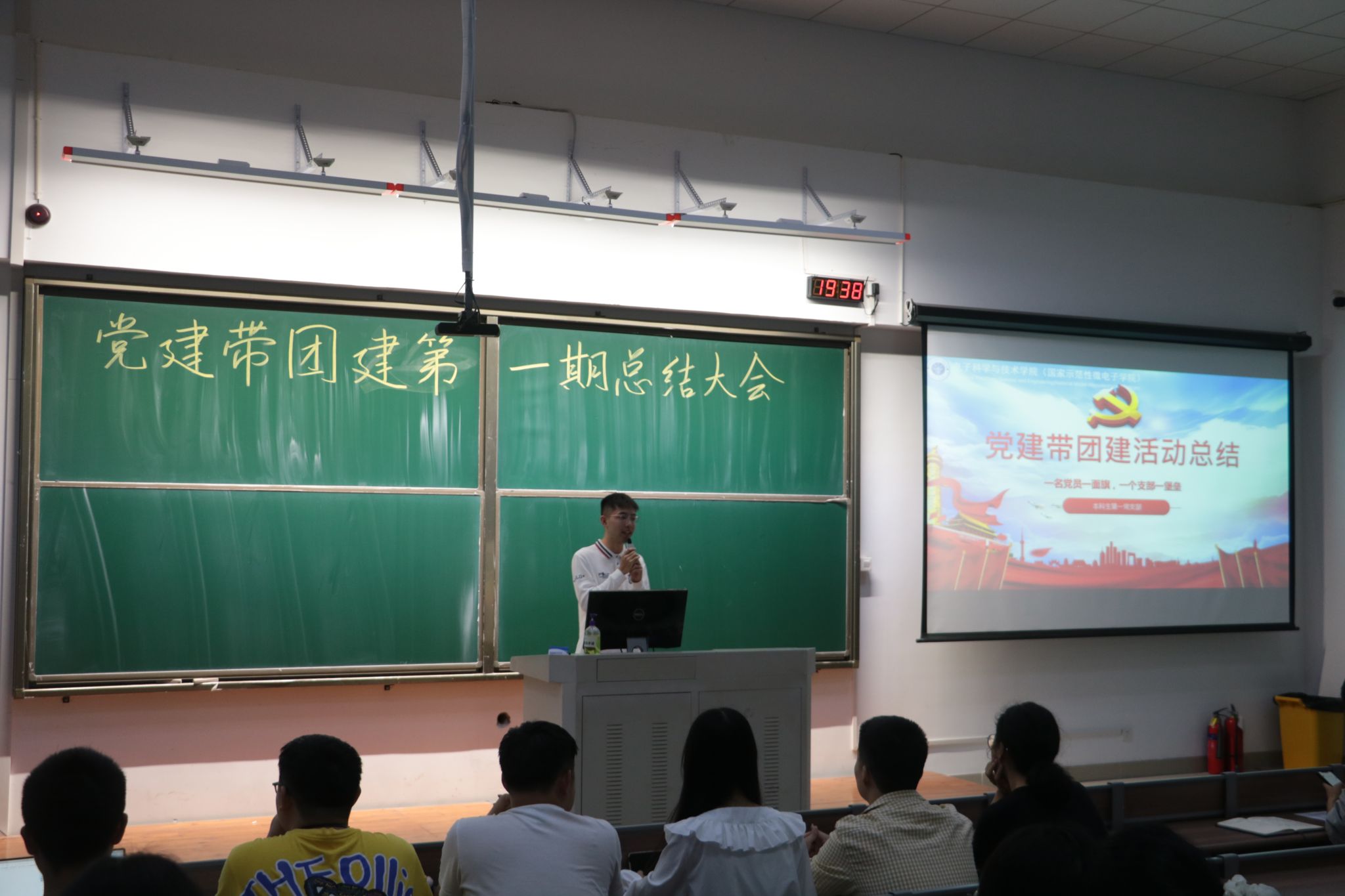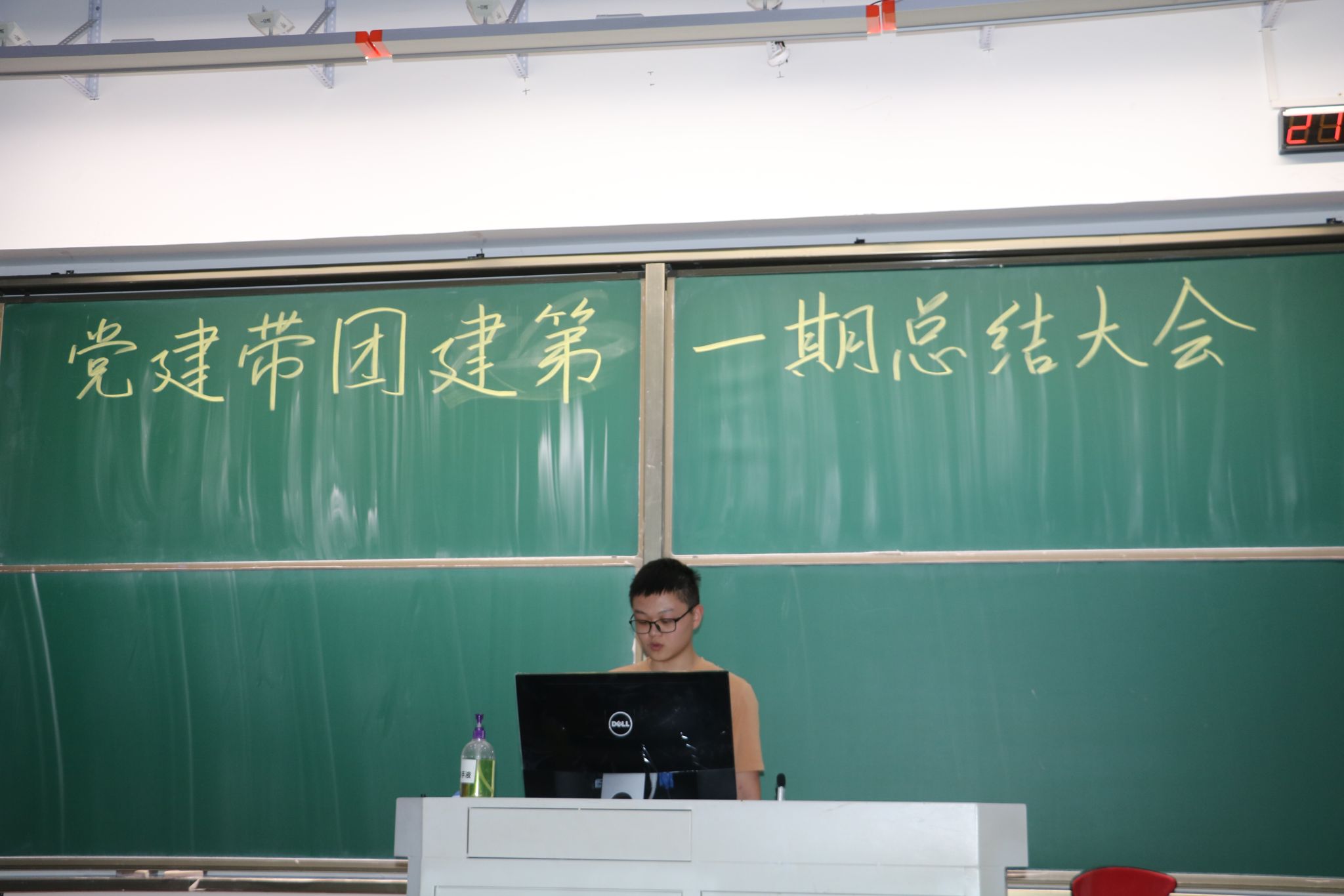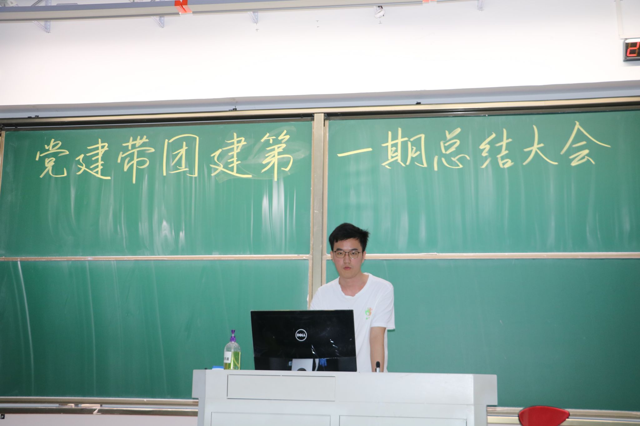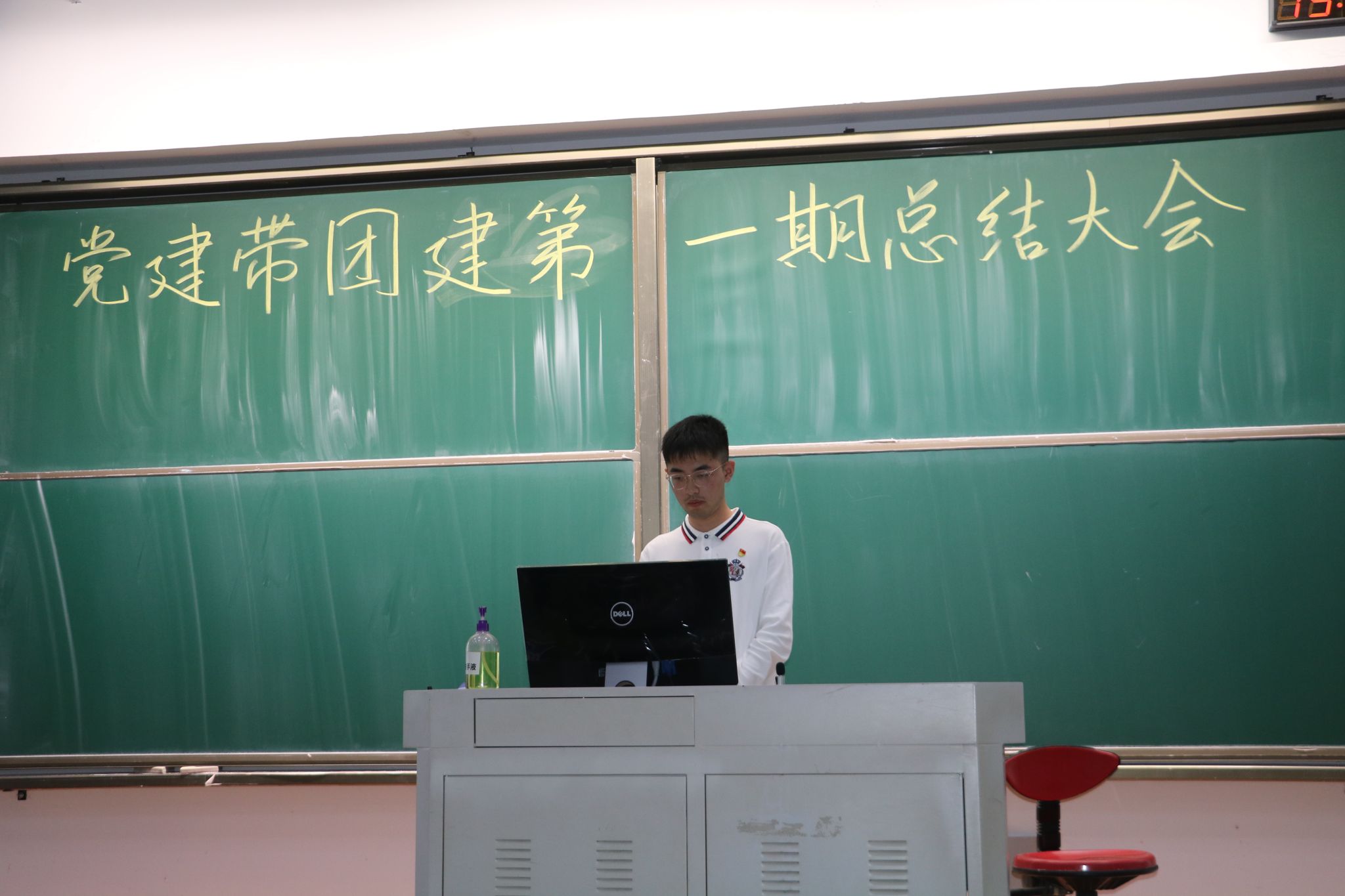 本科生第一党支部预备党员黄强开来同志作为党员代表做党支部的成果展示和心得分享。他通过一段视频对活动开展以来的情况进行了总结展示。接着,他从党的建设、团的建设以及同学们自身发展的三个方面进行分享:党建带团建有着“凝聚青年、服务大局、搭建桥梁、从严治团”的意义,我们要坚持党建带团建,使团的建设纳入党的建设总体规划之中,积极推进团建工作创新,才能使党团组织充满感召力、凝聚力、战斗力,为党组织建设培养更多新生力量和后备军。