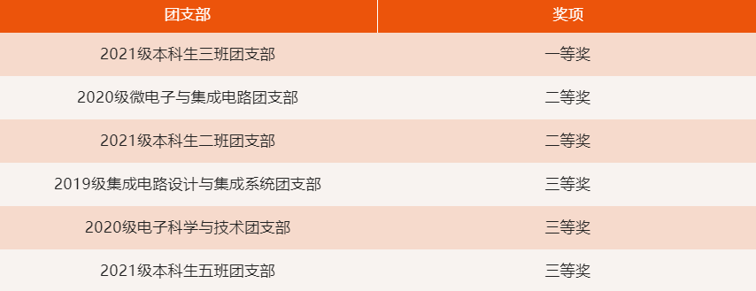 各团支部展示过后,评委们对各班按照展示材料、丰富度、创新性和实效性给各支部打分,观众们也给自己最喜欢的团支部投上了宝贵的一票,最后的获奖情况如下: