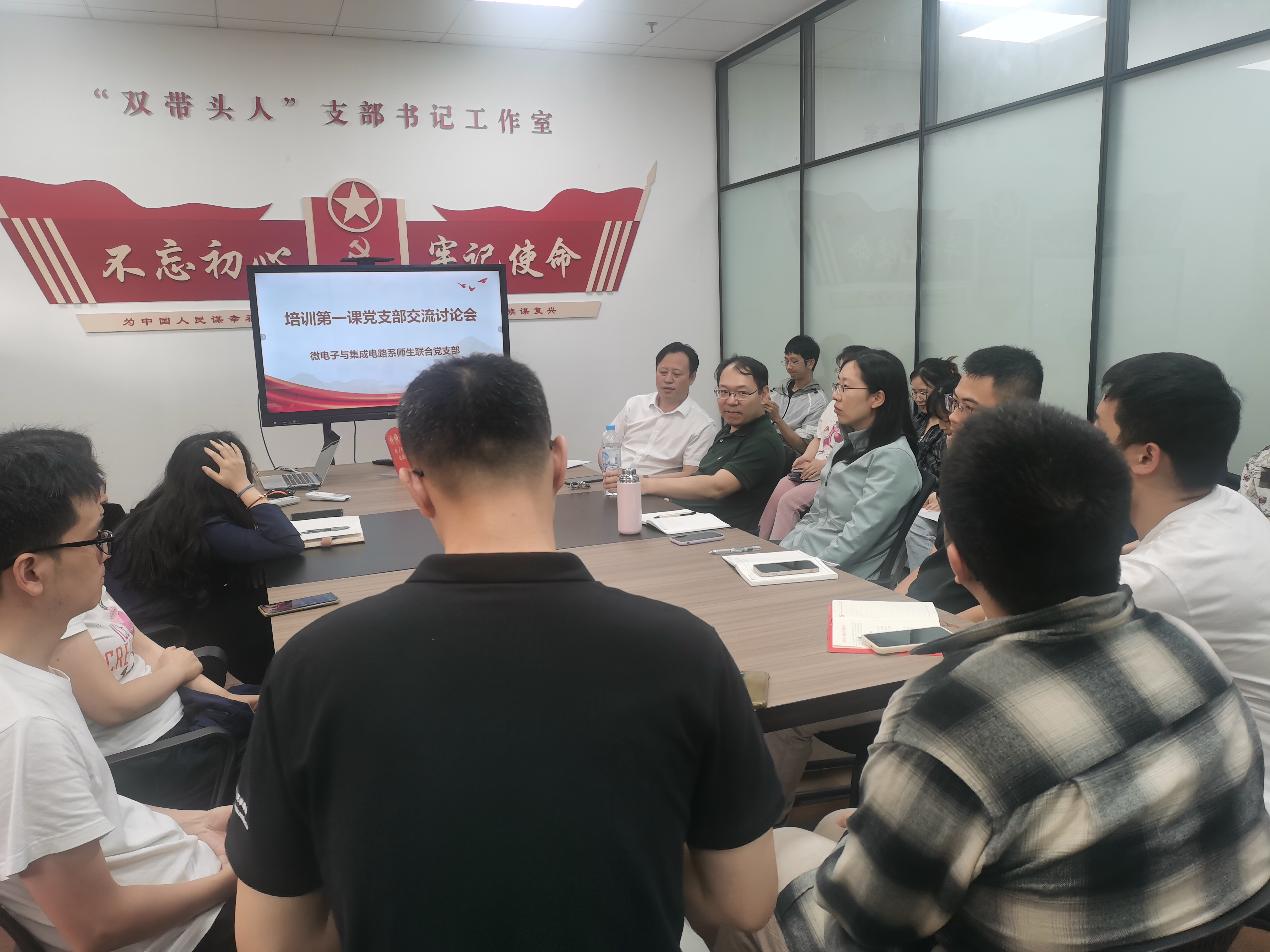 为了更深入接受政治教育、思想淬炼、精神洗礼,引导青年党员持续增强历史自觉、历史自信,不断提升党支部创造力、凝聚力、战斗力,4月16日下午,微电子与集成电路系师生联合党支部在文宣楼C307开展了集中培训第一课交流讨论会。会上,支部师生回顾了党员集中培训第一课的内容,邀请了4位党员代表作主题发言,与会党员黎科、窦宇航、林伟毅、梅洋、张捷、许荣彬、钟毅、李秋红、李威、喻甜等畅谈了在集中培训第一课中的所学、所悟、所感。
