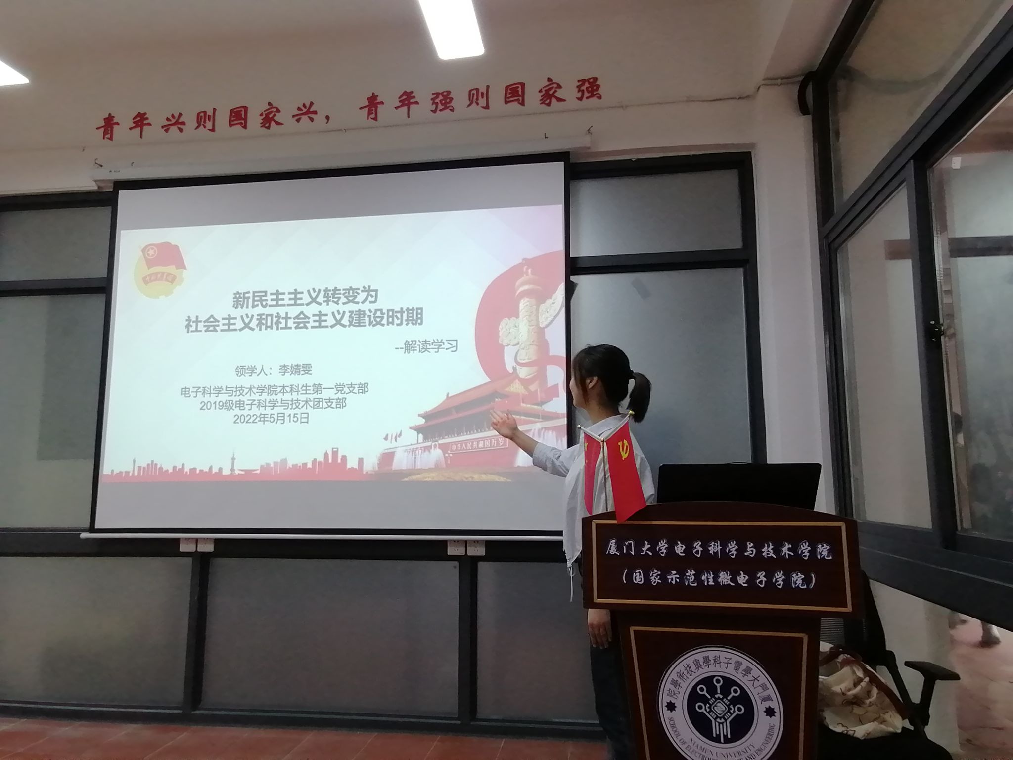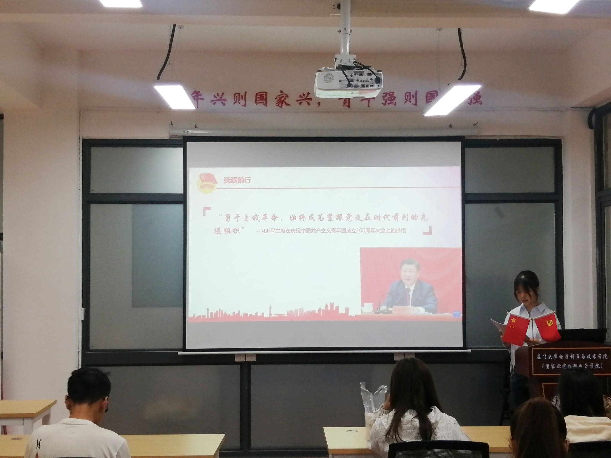 5月15日下午,电子科学与技术学院在博学二“芯创空间”举办“党建带团建 学习中国共产党人的精神谱系”系列活动之“芯青年,心向党,百年团史青年说”学习活动。电子科学与技术学院本科生第一党支部党员及2019级电子信息科学与技术团支部全体团员参与本次活动。