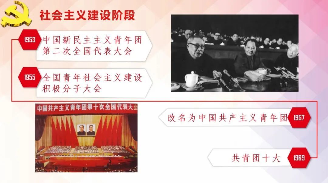 随着过渡时期任务的逐步完成,1957年5月,中国新民主主义青年团第三次全国代表大会在北京召开,全体代表一致通过决议:将中国新民主主义青年团改名为中国共产主义青年团。此后,中国共产主义青年团这个名称一直沿用至今。大会后,全团上下组织各种形式的活动,庆祝纪念改名,贯彻团代会精神,学习新《中国共产主义青年团章程》。
