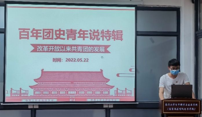 回望百年,青春向党。本次主题汇报由支部预备党员欧亿强主讲,他带领团员们回顾了共青团在1978-1998年这二十年间的发展和变革,重点讲解了1978年党的十一届三中全会后共青团的工作重心变化、1985年中国青年政治学院成立、1988年中国共青团代团歌确定、1991年中国青少年研究中心成立、1993年共青团十三届二中全会和1998年共青团十四届二中全会召开等六大历史事件。通过学习,同学们更加深刻地认识到,青年是实现中华民族伟大复兴的中国梦的中流砥柱,是与国家同呼吸共命运,“以青春之我、奋斗之我,为民族复兴铺路架桥,为祖国建设添砖加瓦”之关键所在。