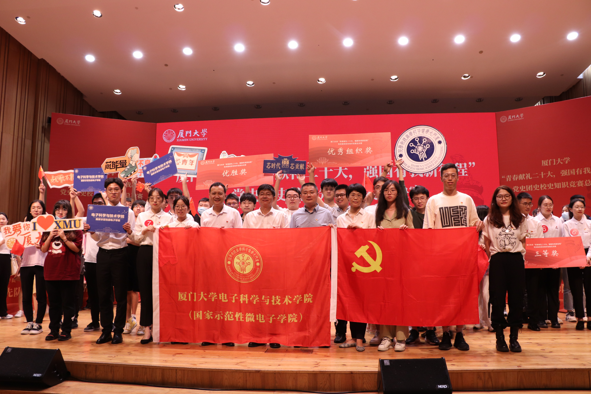 5月29日晚,厦门大学“青春献礼二十大,强国有我新征程”党史团史校史知识竞赛总决赛在科学艺术中心二楼音乐厅顺利举行。学院荣获优秀组织奖,“芯青年”队斩获优胜奖!